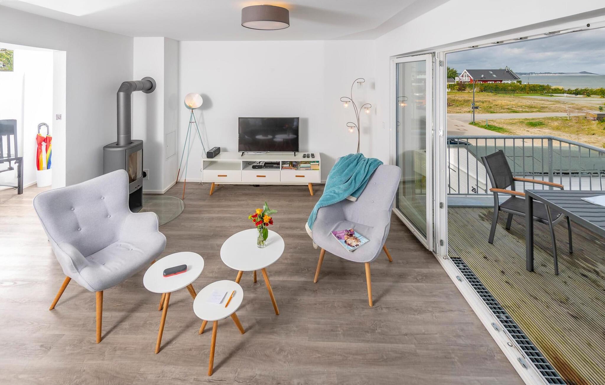 Det bliver hyggeligt i stuen, for en hyggelig siddegruppe indbyder til en romantisk aften ved pejsen, ikke kun på dårlige nordiske vejrdage. Legetøj er tilgængeligt til indendørs underholdning samt gratis Netflix-adgang. Gulvvarme sikrer hyggelig komfort i hele ferielejligheden.