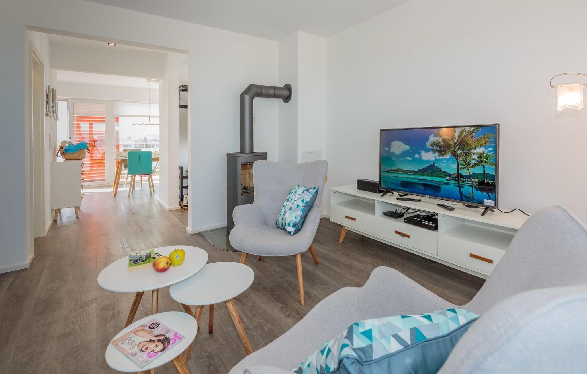 Den rummelige etagelejlighed Drachenfisch imponerer med sin direkte vandplacering på begge sider og lyse, lyse værelser.