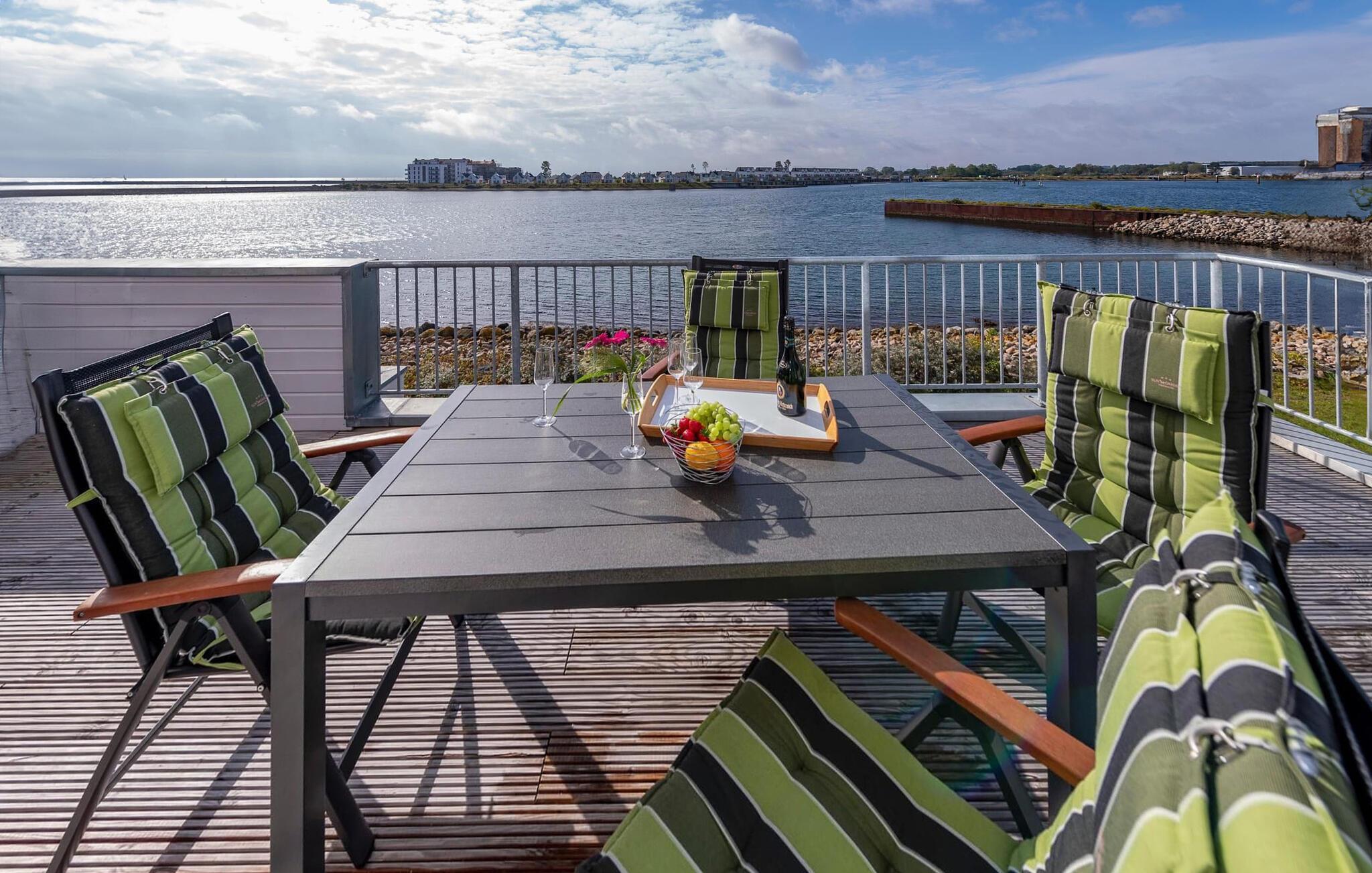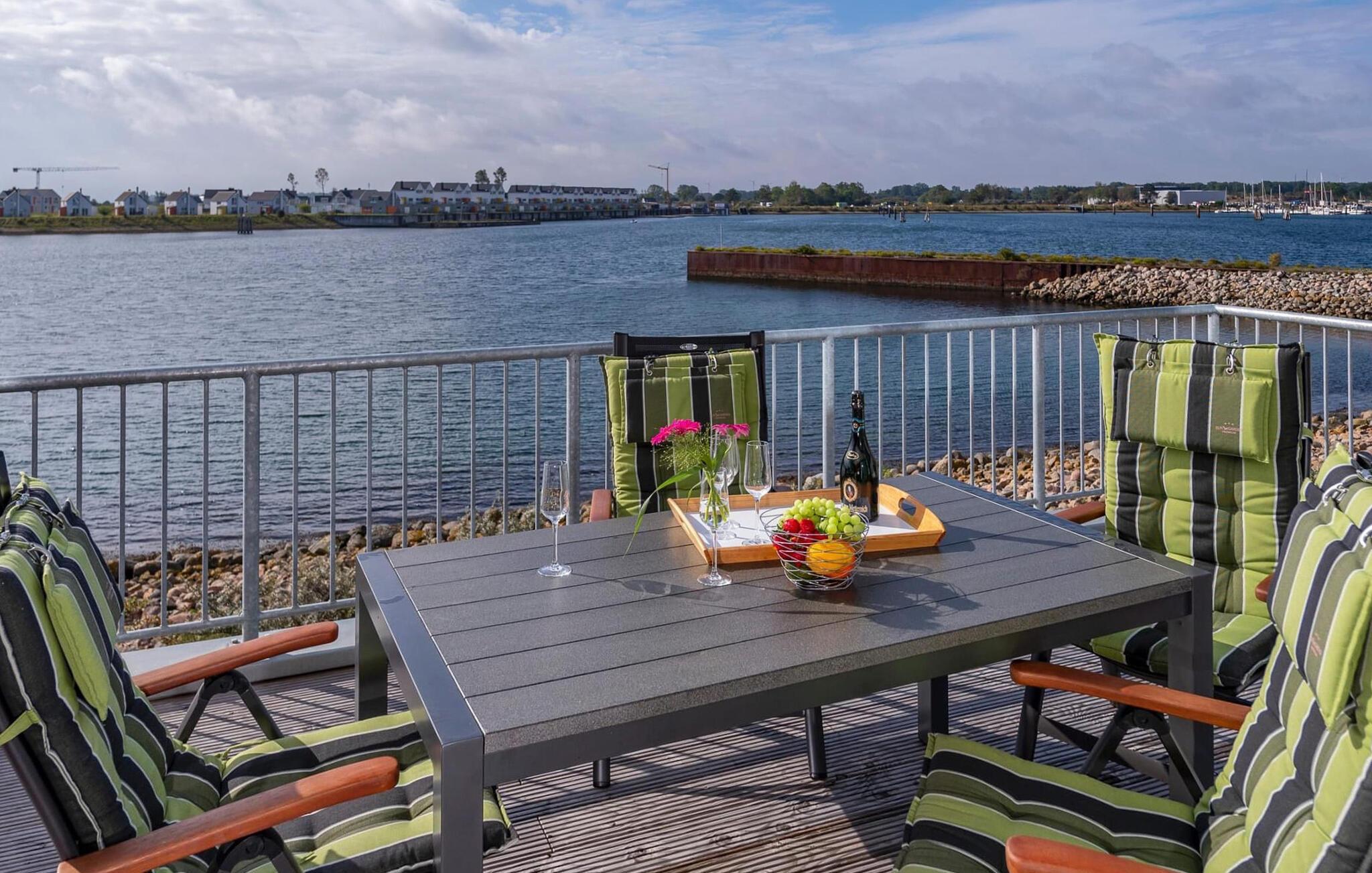 Vores favoritsted: Nyd jeres fritid med en spændende bog på solterrassen og se den maritime aktivitet i sejl- og lystbådshavnen.