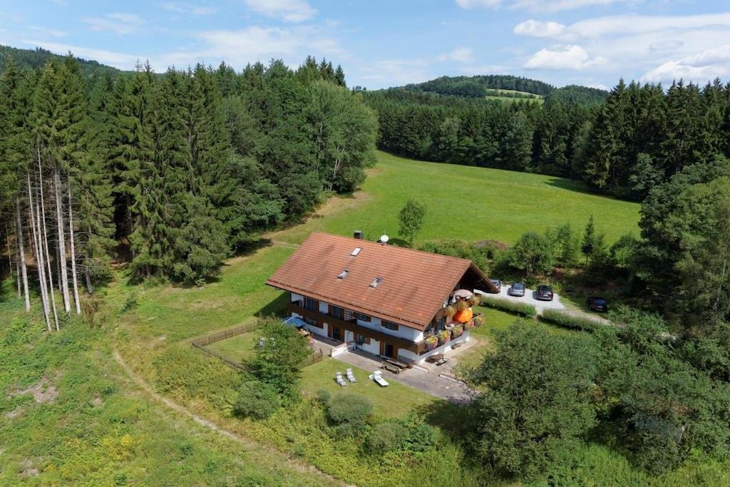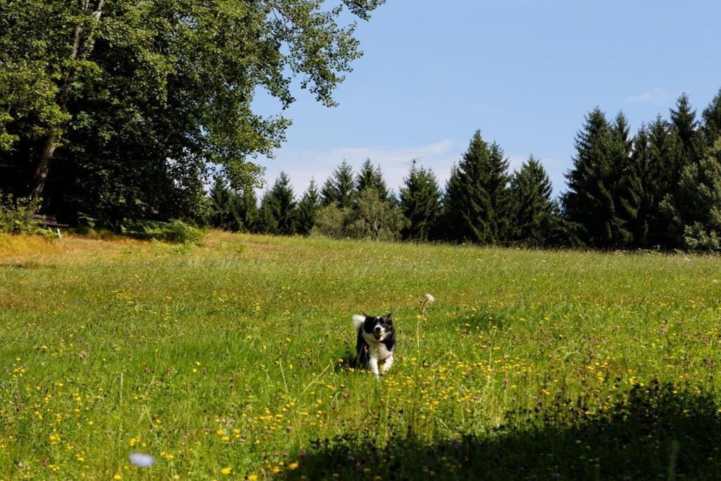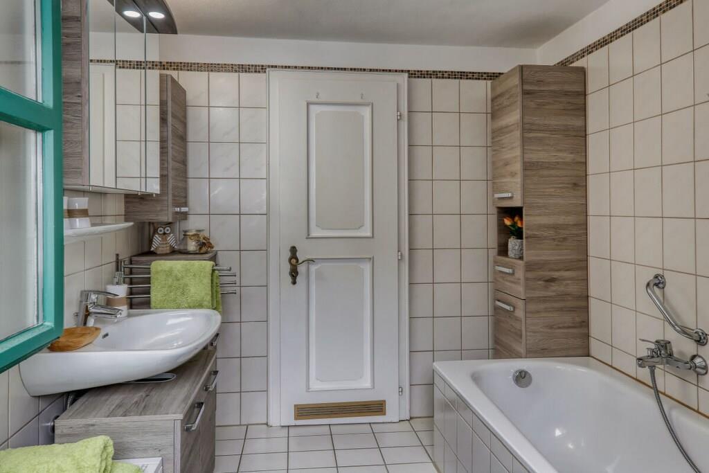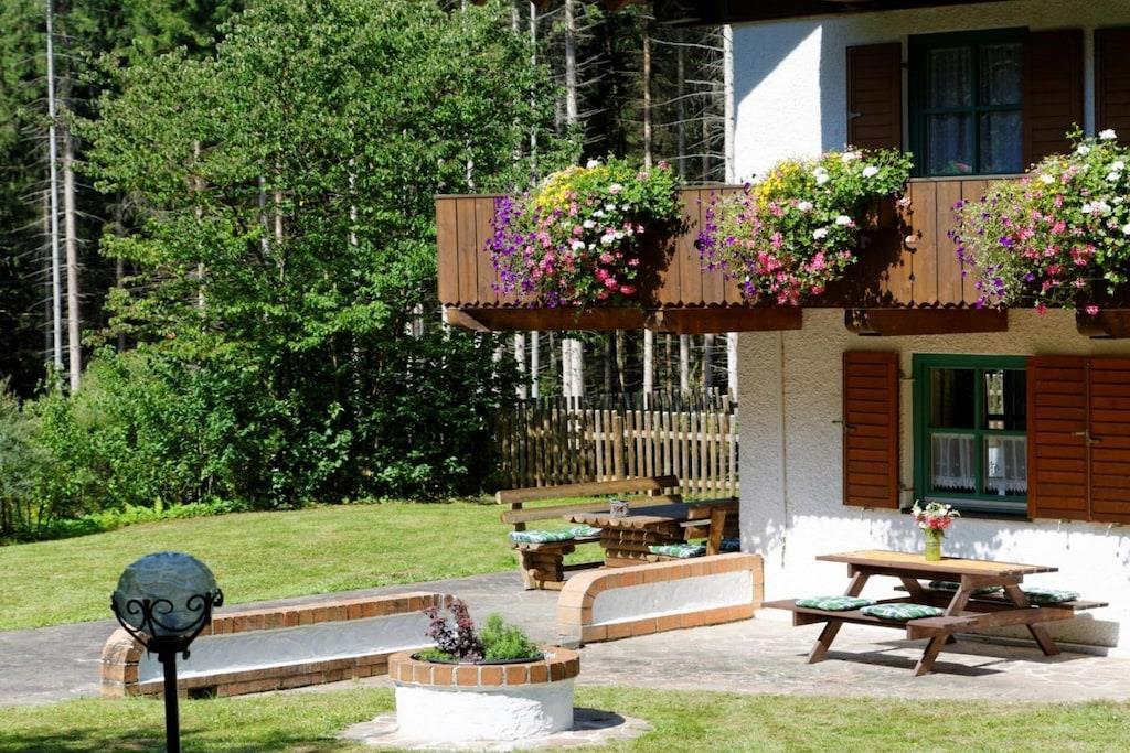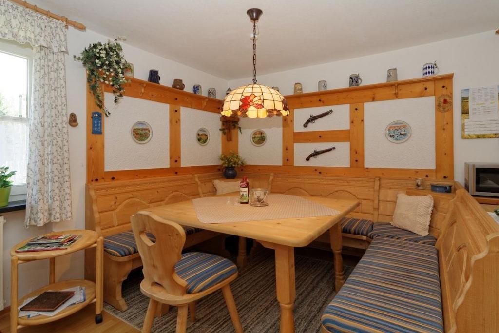 Erdgeschossferienwohnung im Landhausstil bis 4 Personen, mitten im Wald in Alleinlage im 6-Parteienhaus. Es erwartet Sie eine rustikale Einrichtung aus Holz in allen Räumen. Die Einbauküche ist mit Elektroherd, Mikrowelle, Backofen, Spülmaschine und Kühlschrank mit Gefrierfach ausgestattet. Es gibt eine gemütliche Eckbank im Essbereich und eine große Doppelbettcouch im Wohnbereich. Im Schlafzimmer steht ein bequemes Doppelbett und ein 4-türiger Kleiderschrank. Das Bad verfügt über Wanne mit Duschaufsatz und ein Fenster zum Öffnen. Im Außenbereich steht Ihnen eine Terrasse mit Gartenmöbeln und ein eingezäunter Garten zur Verfügung. In den Wintermonaten mit Schnee sind Schneeketten o. Allradantrieb empfehlenswert!