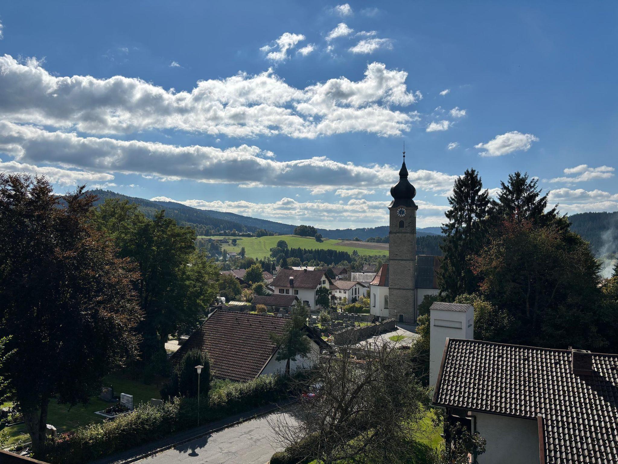 Bei schönem Wetter und an lauen Sommerabenden genießen Sie einen herrlichen Blick vom Südbalkon über die Dächer des Ortes auf das Zellertal und die umliegenden Berge.