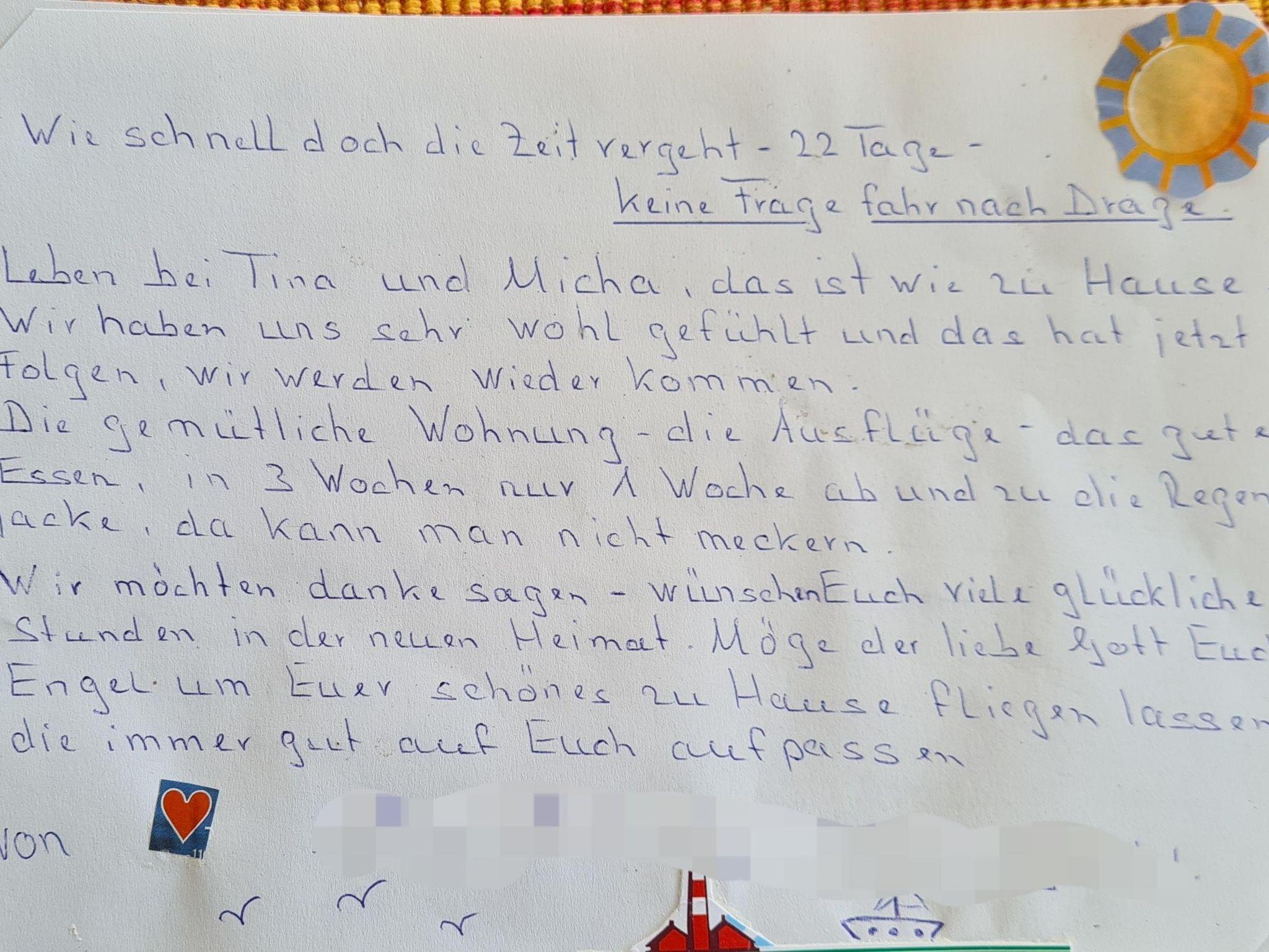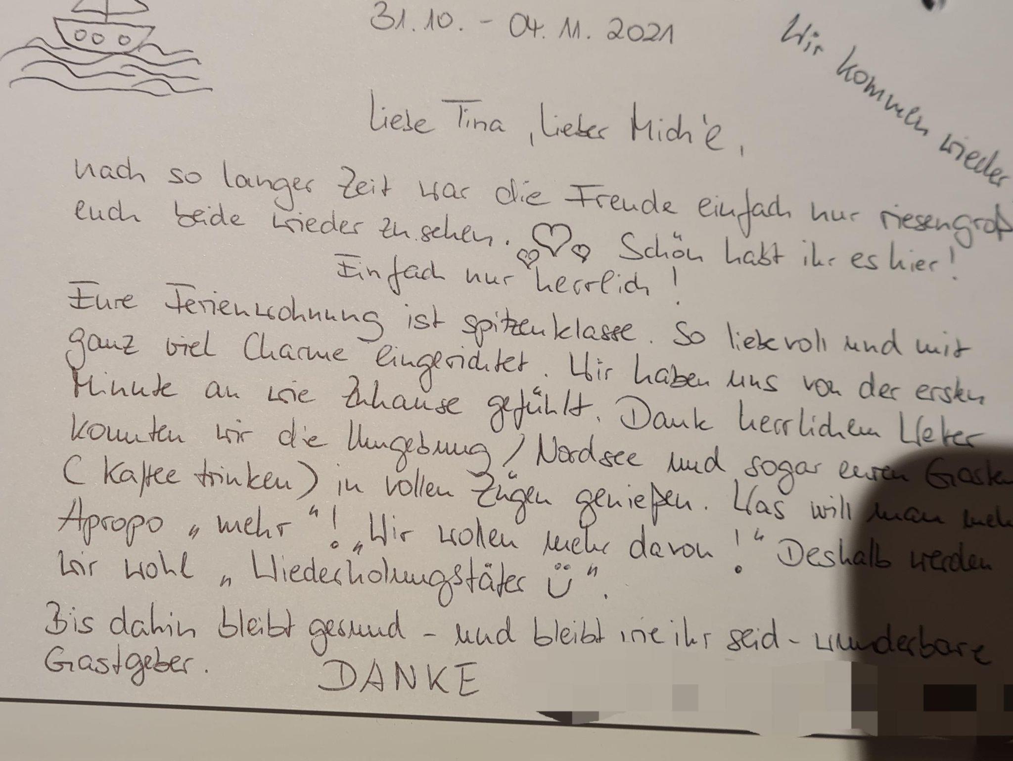 Sie können direkt am Haus auf einem eigenen Stellplatz parken und Ihre Fahrräder in die geschlossene Einfahrt stellen. Anreisen können Sie von 15-17 Uhr. Sollte es später werden, setzen Sie sich bitte mit uns in Verbindung
