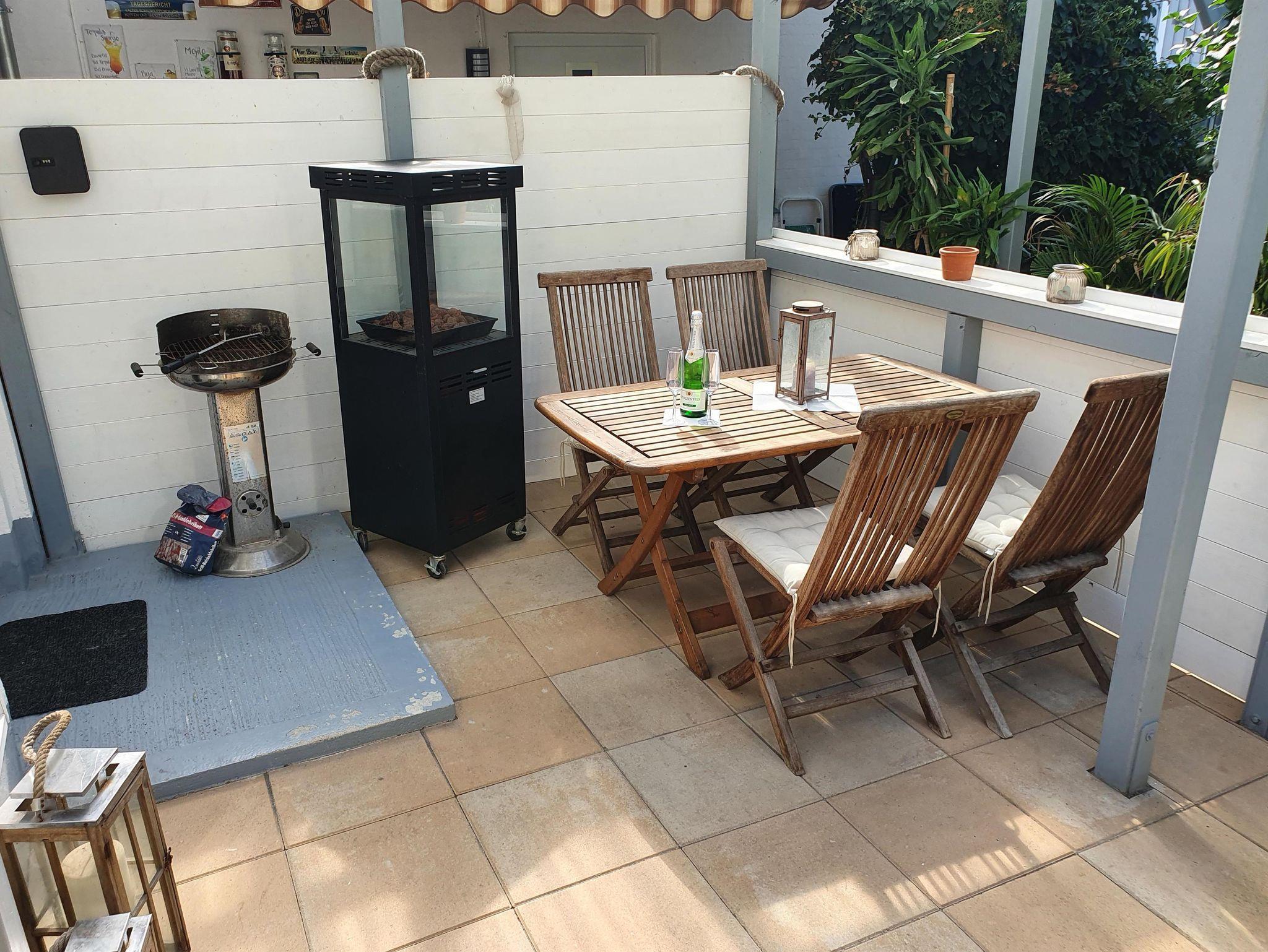 Auf der dazu gehörenden kleinen überdachten Terasse können Sie grillen und gemütlich zusammen sitzen.