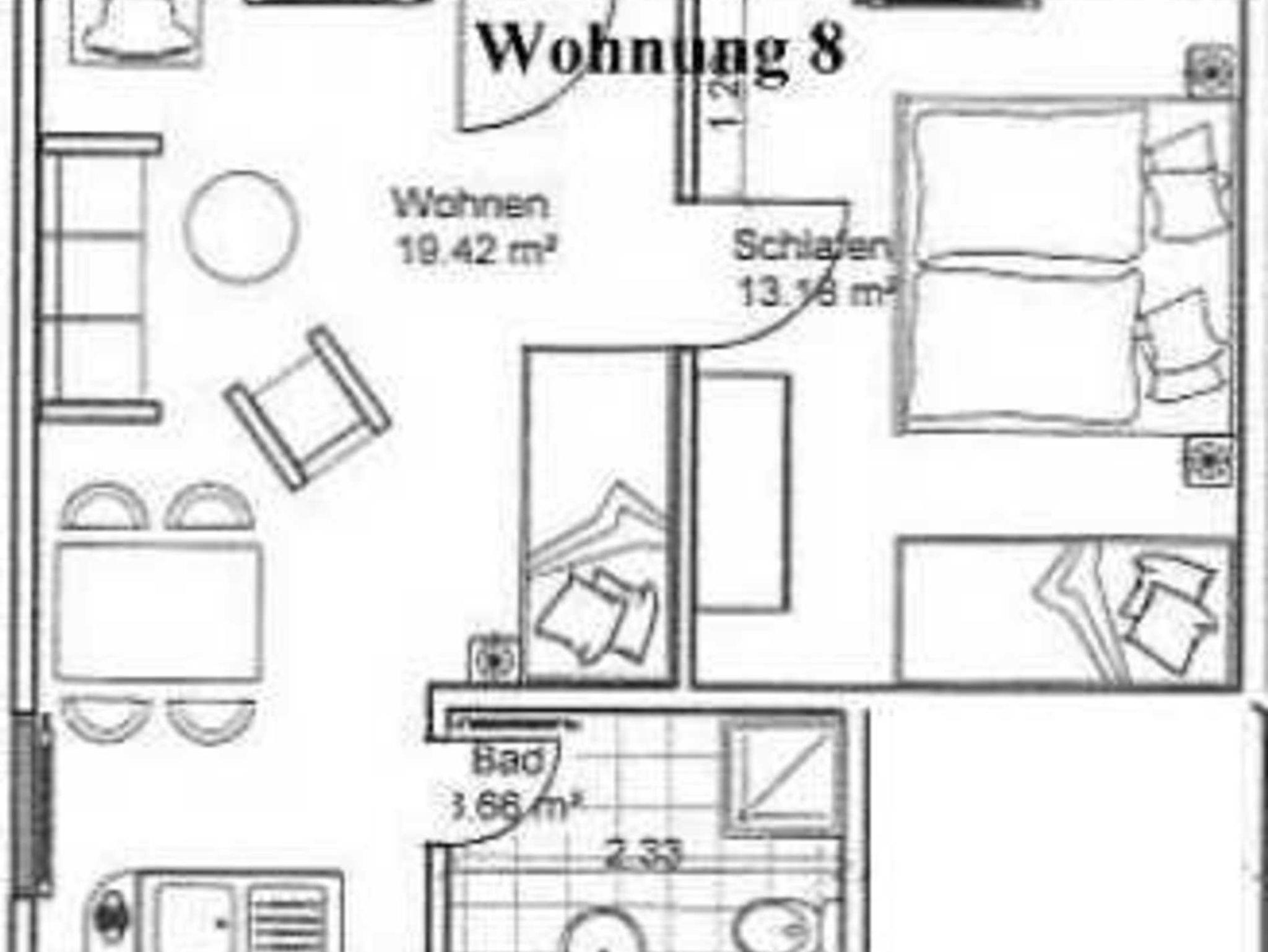 Die Ferienwohnung liegt im Erdgeschoß, hat eine Größe von 37 m² und verfügt über einen Wohnraum mit Pantry, ein Schlafzimmer mit einem Doppel- und einem Etagenbett, ein Badezimmer und eine Terrasse. Im Wohnzimmer befindet sich ein weiteres Einzelbett, zudem ist eine Aufbettung möglich (Schlafsofa). In der Miniküche befinden sich zwei Kochplatten, eine Kaffemaschine, ein Wasserkocher, ein Toaster, ein Kühlschrank mit Gefrierfach sowie eine Mikrowelle. Wäsche kann zugebucht werden (Handtuch- Bettwäschepaket 25,00 pro Person). Im Ferienpark kann ein Grill gemietet werden, ebenso ist die Nutzung einer gemeinschaftlichen Waschmaschine möglich (gegen Gebühr).