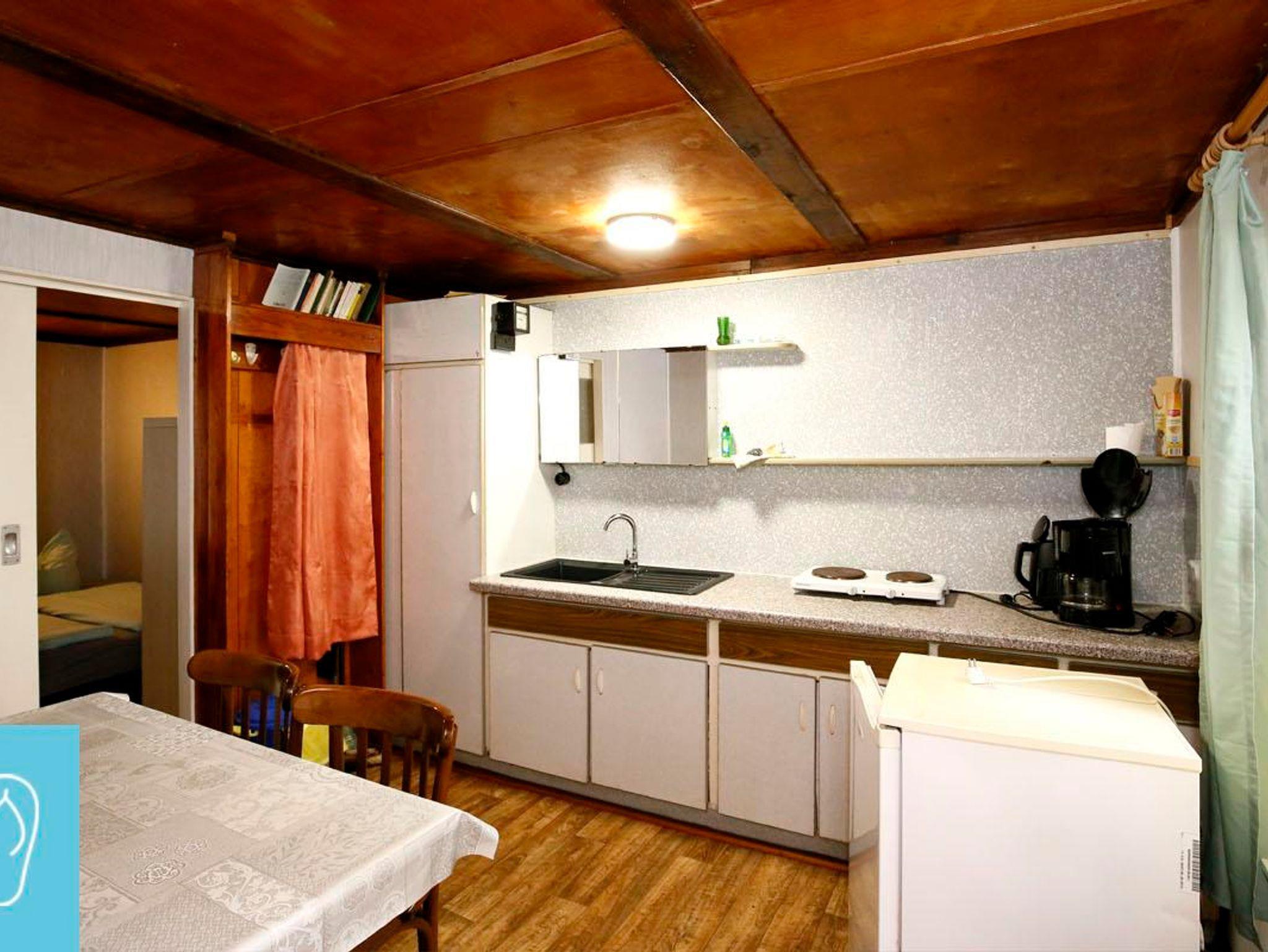 Klein aber fein, mit Liebe zum Detail sind die kleinen urigen Blockhütten ausgestattet. Sie haben einen Wasseranschluss und bestehen aus einem Schlafraum und einer Wohnküche mit Sitzecke. Das zweckmäßige Sanitärgebäude mit Duschen und WC ist nur wenige Meter entfernt. Geeignet für Minimalisten, Individualisten, Sinnsucher und Familien.