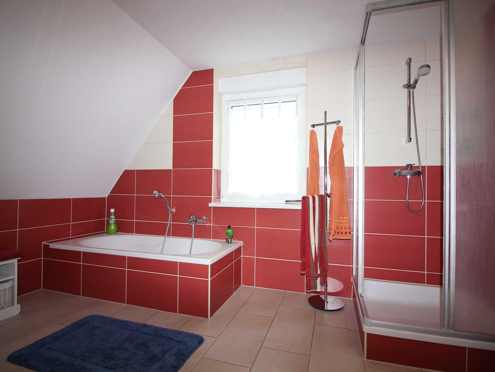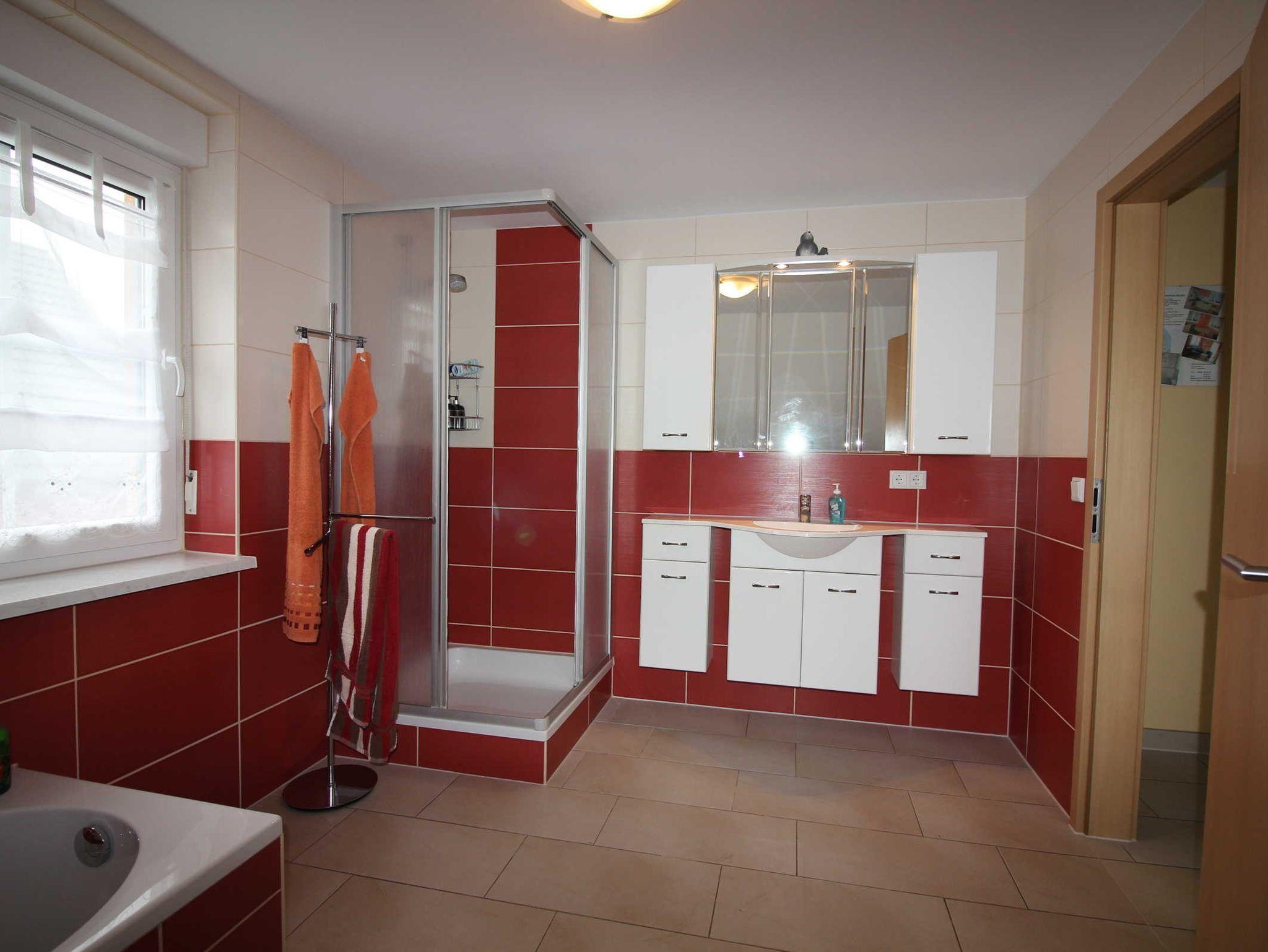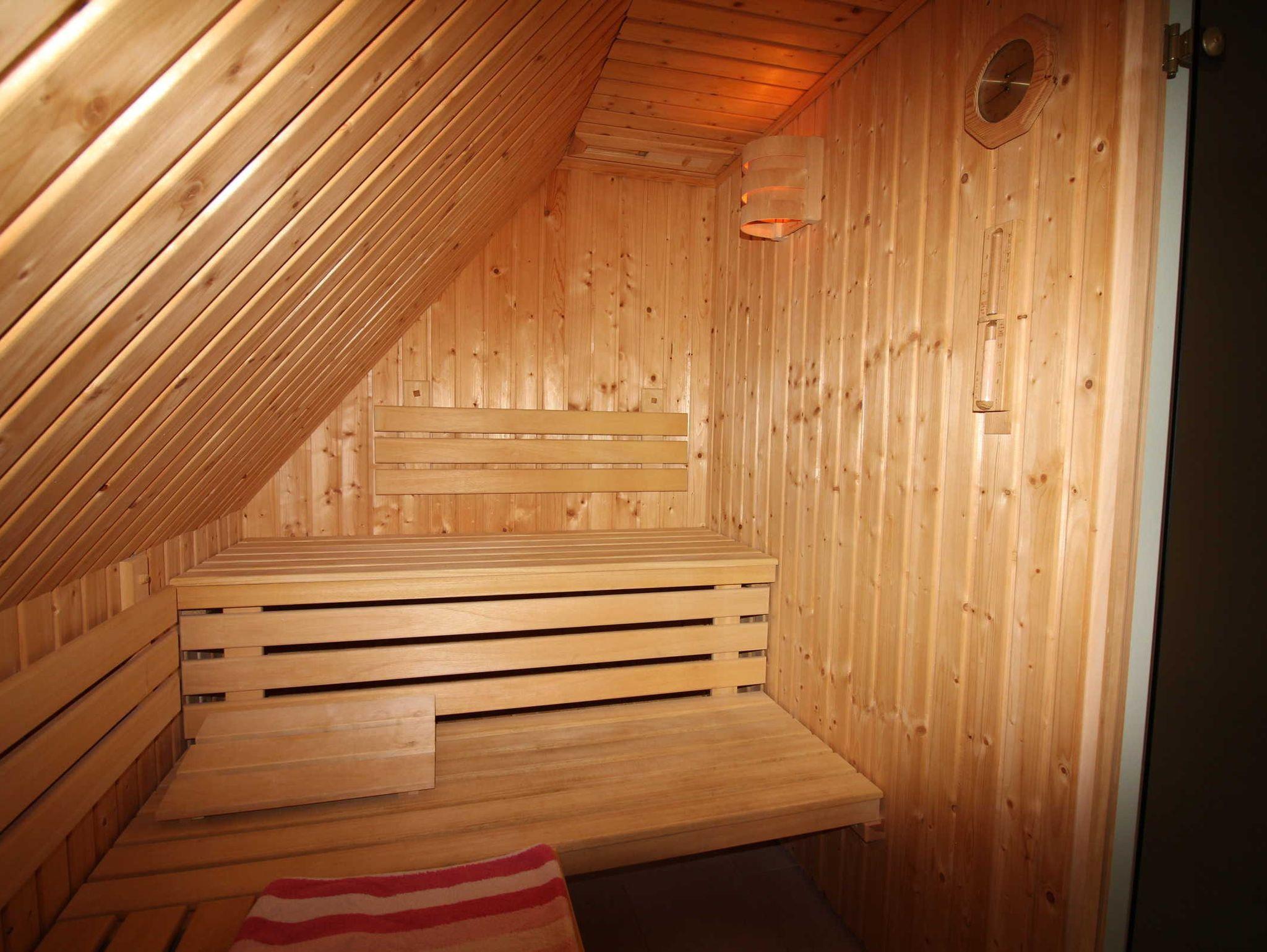 In der 1. Etage befinden sich 2 Schlafzimmer, jeweils mit Doppelbett und zusätzlich einer Schlafcouch, darüber hinaus auch hier ein Bad mit Dusche/WC und zusätzlich einer Badewanne. In einem Extra-Raum befindet sich die Sauna, die für ca. 4 Personen geeignet ist.