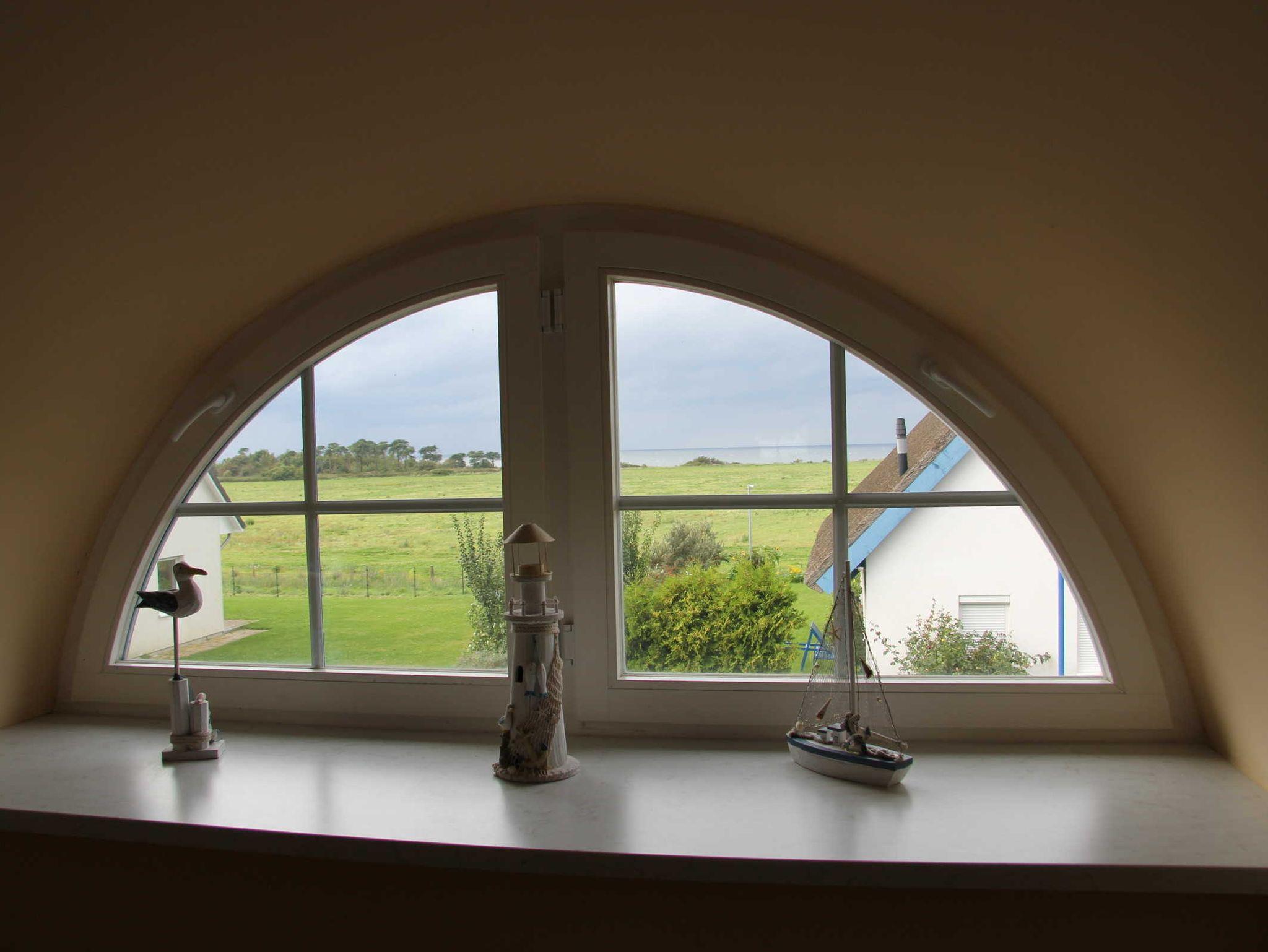Da sich das Ferienhaus auf dem Hochufer befindet, haben Sie von den oberen Zimmern aus einen herrlichen Blick über die Ostsee bis zur Insel Hiddensee.
