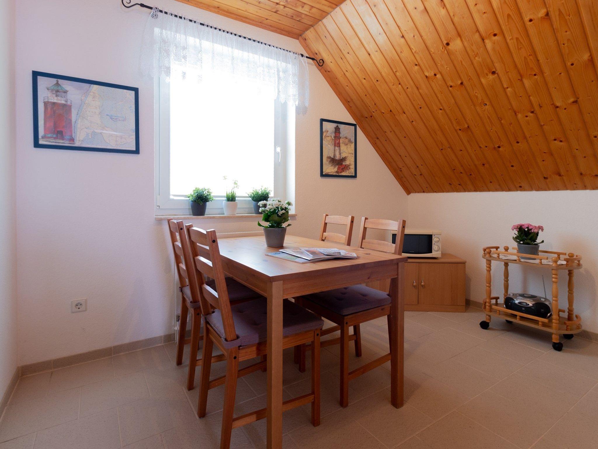 Die ca. 51 m² große Ferienwohnung liegt im Obergeschoss eines Einfamilienhauses und bietet Platz für max. zwei Personen.