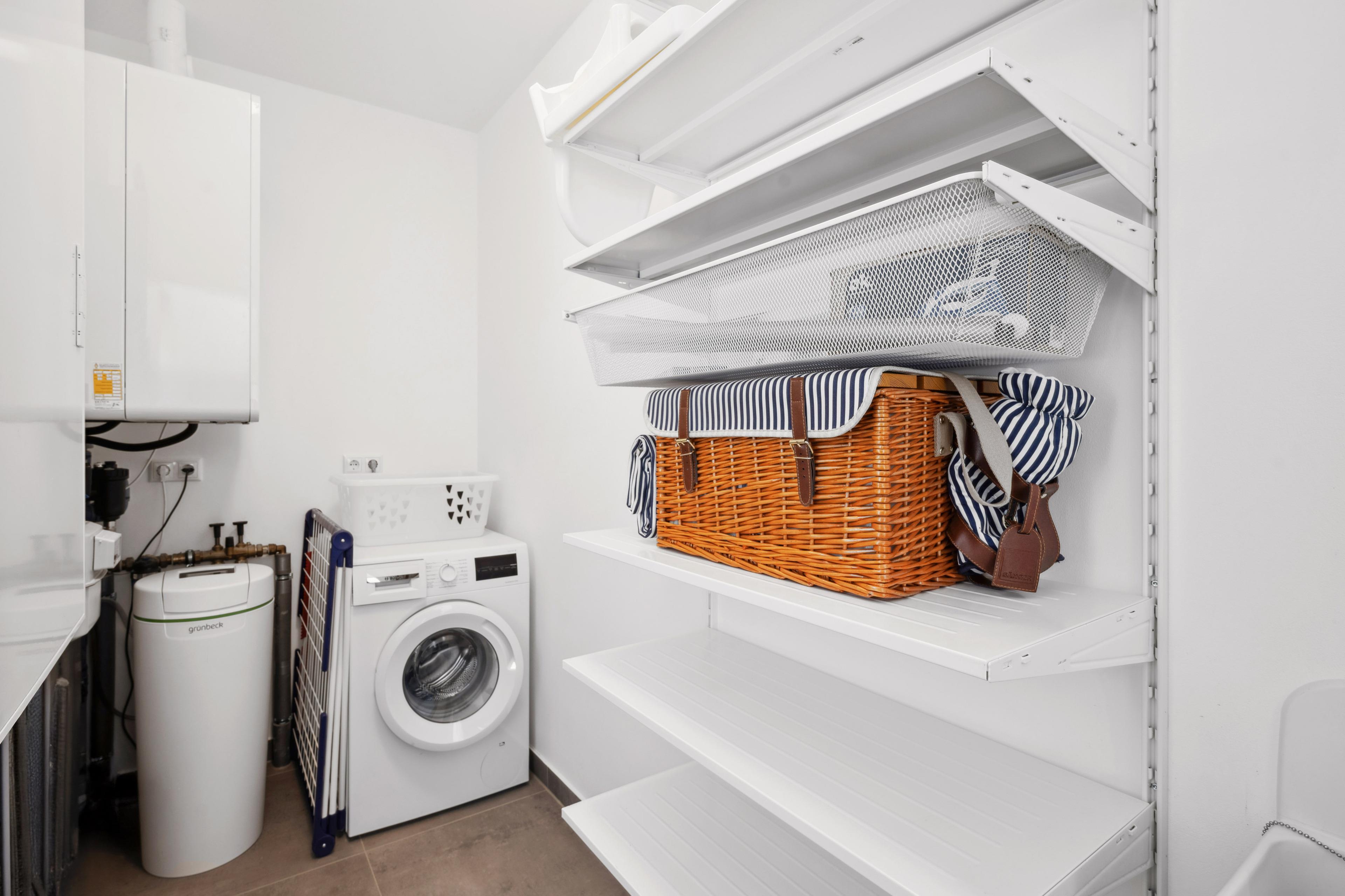 In der Einbauküche der Firma Nolte mit Ceranfeld, Backofen, Mikrowelle, Geschirrspülmaschine & einem großen Kühlschrank mit 3 separaten Gefrierfächern fehlt es Ihnen an nichts. Eine Kaffeemaschine, Wasserkocher, Toaster, Nespresso Kaffeeautomat sowie ausreichend Geschirr, Besteck und Gläser sind ebenso vorhanden. Im HWR finden Sie die Waschmaschine, Bügelbrett+Bügeleisen & einen Staubsauger.