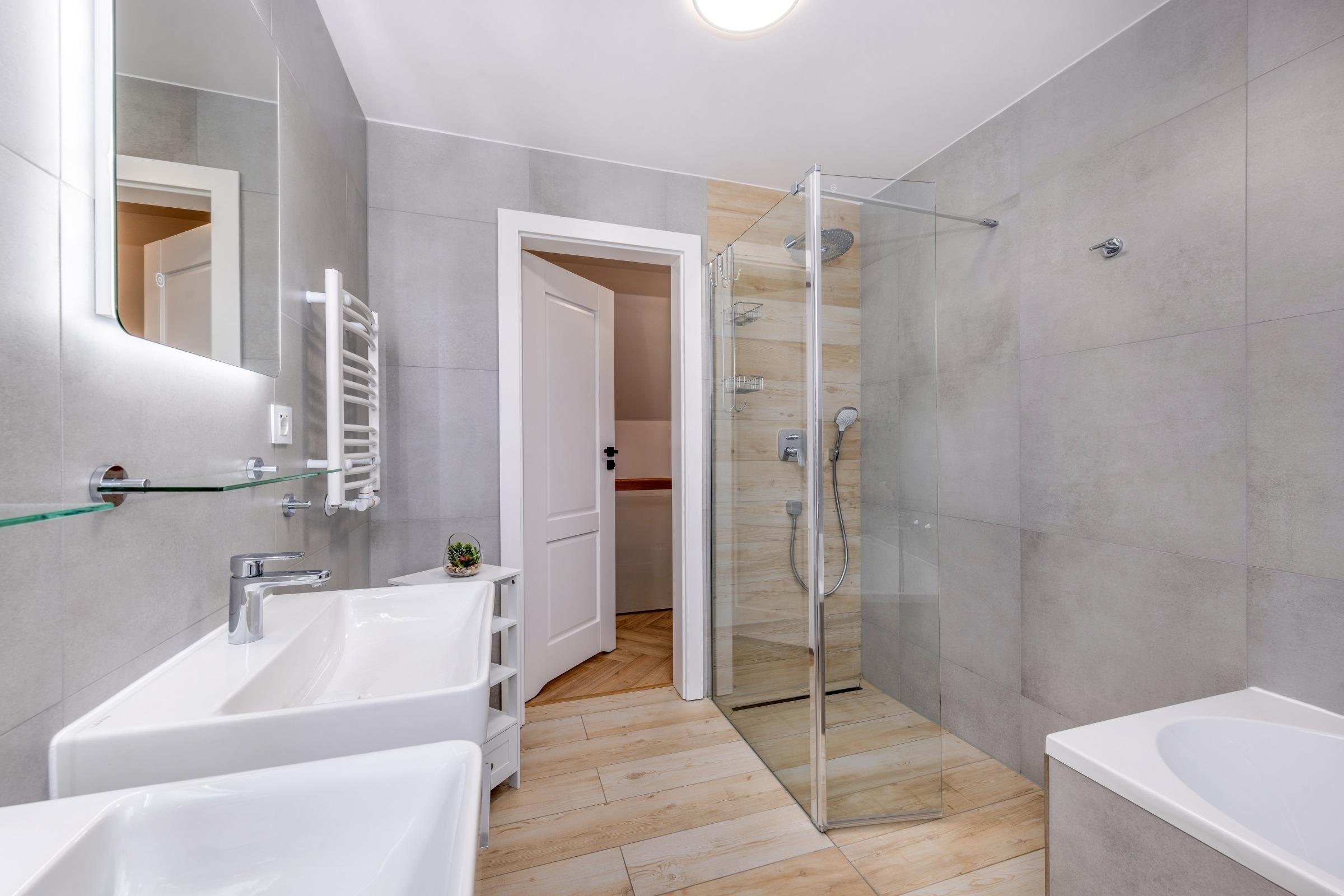 Badeværelse med bruser og badekar