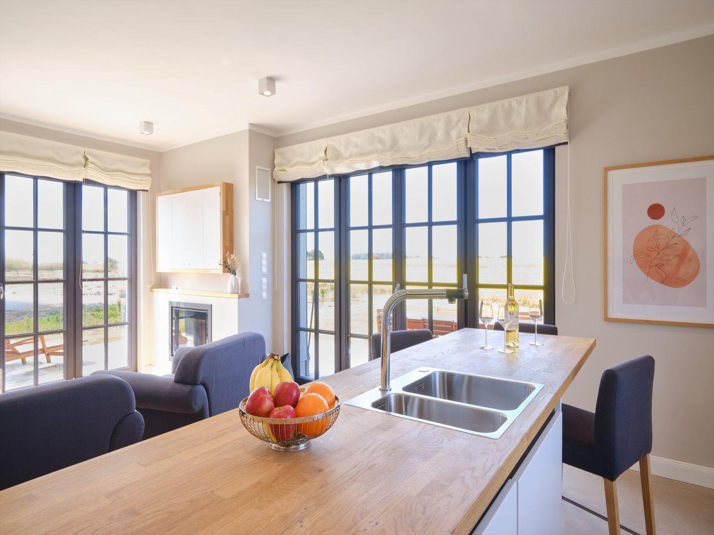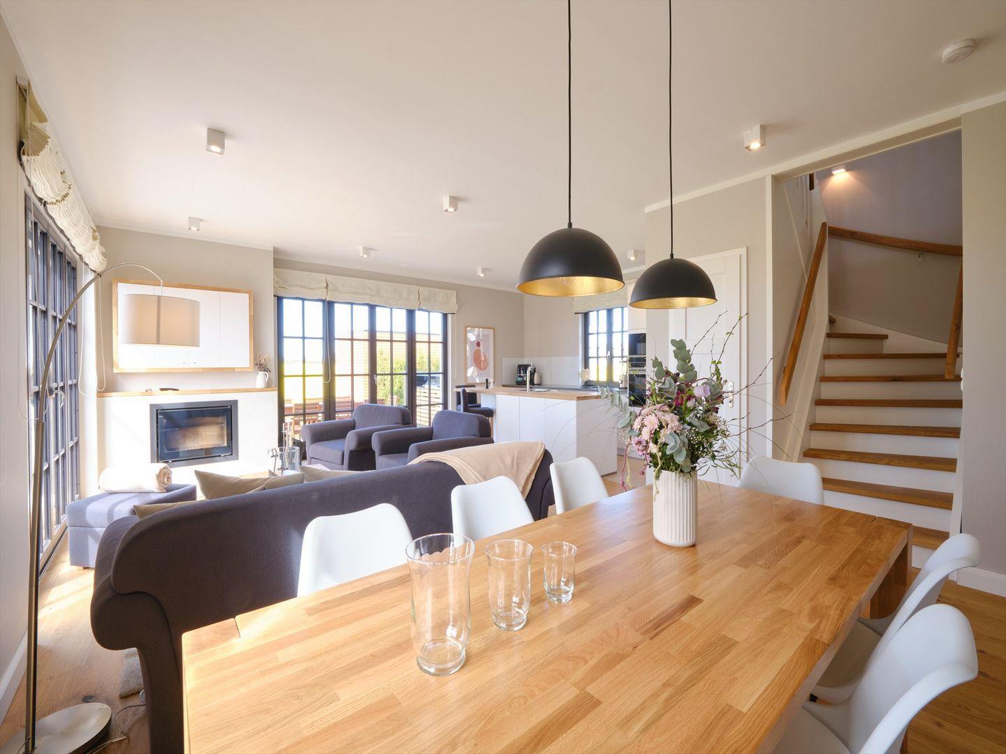 Neu erbaute Villa mit 155 qm, Loungebereich, Außensauna, 4 Schlafzimmer mit Boxspringbetten, großzügiger Wohnraum mit Essbereich und großem Kamin, eine hochwertige in den Wohnbereich integrierte Qualitätsküche mit Geschirrspüler, 1 Badelounge, 1 Vollbad, 1 Gäste-WC, Hauswirtschaftsraum mit Waschmaschine und Trockner, LCD-Flachbildschirme sowie eine Stereo-Anlage, Bettwäsche und Handtücher sind ausreichend vorhanden.