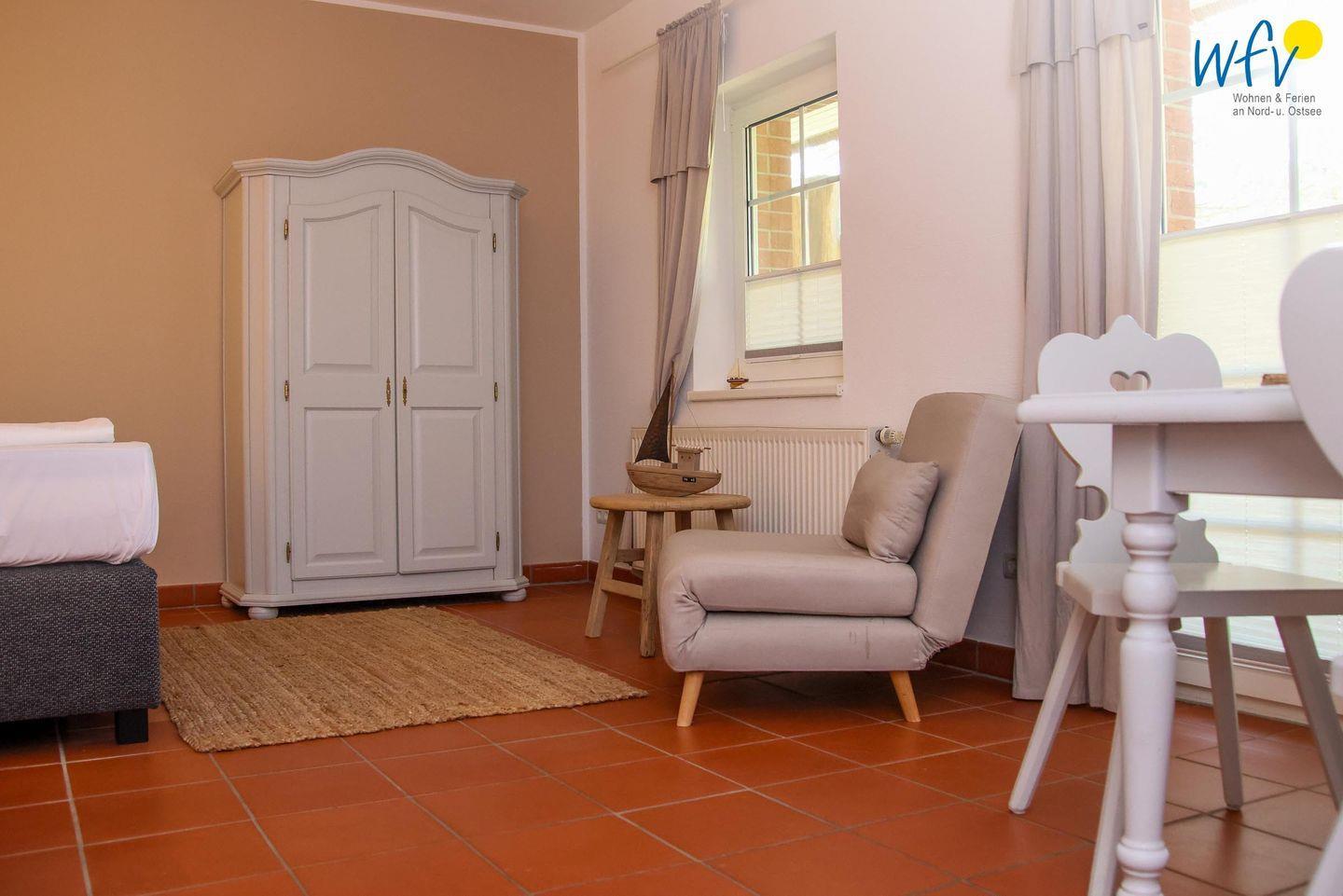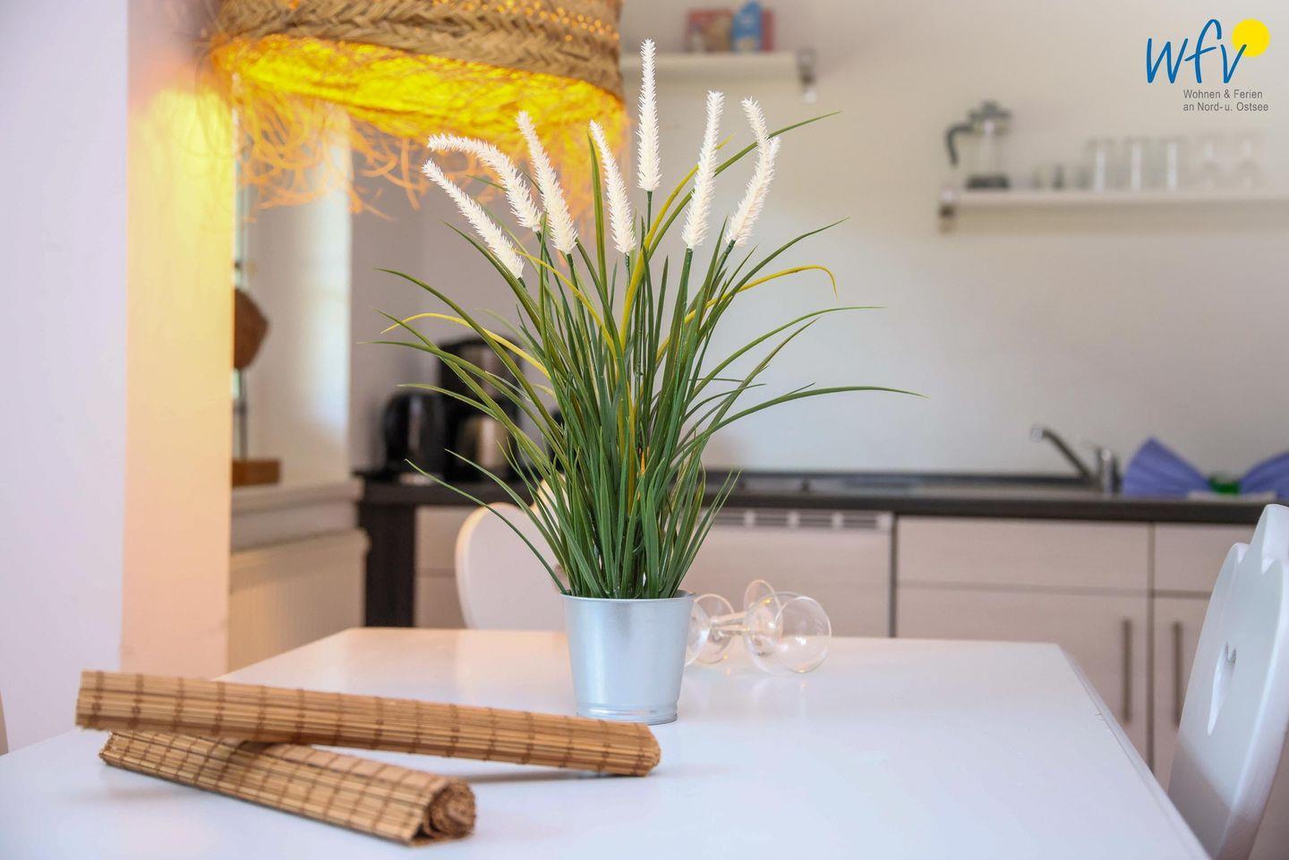 Die Ferienanlage umfasst 23 Ferienwohnungen. In unserem 33 m² großen Appartement "Sonnengruß" im Erdgeschoss erwartet Sie ein kombinierter Wohn-/Schlafraum mit Sitzgelegenheiten, Doppelbett (180 cm x 200 cm), offener Küche und Essplatz sowie ein Duschbad. Das Appartement verfügt außerdem über eine Terrasse, sodass Sie die wohltuende Ostseeluft genießen können.