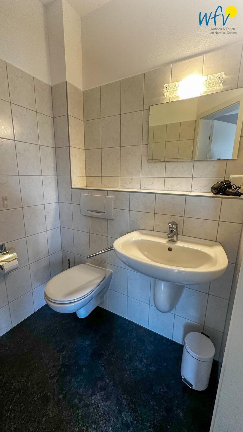Ein Tageslichtbad mit Dusche, Haartrockner, Kosmetikspiegel und Handtuchheizung sowie ein zusätzliches Gäste-WC sorgen für weiteren Wohnkomfort.
