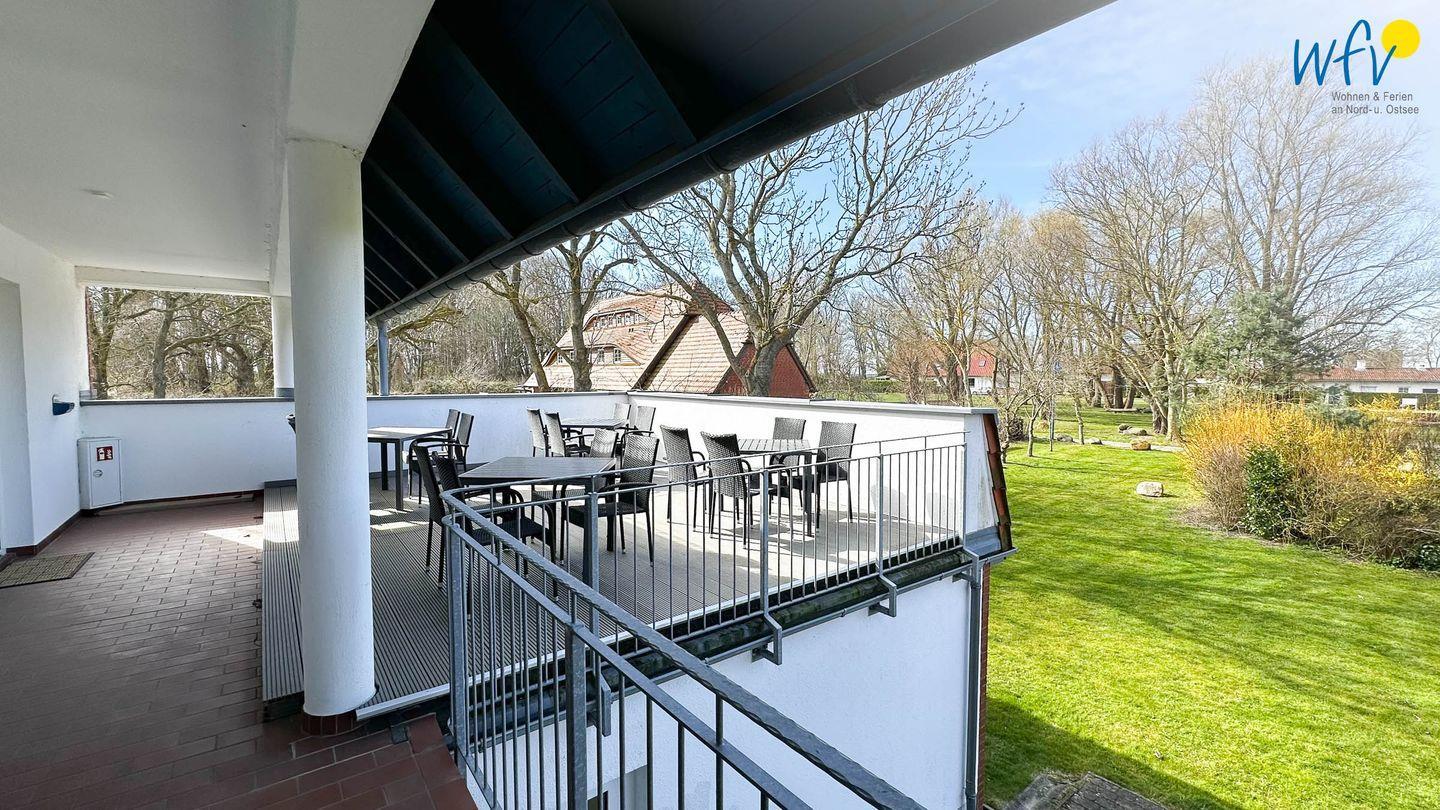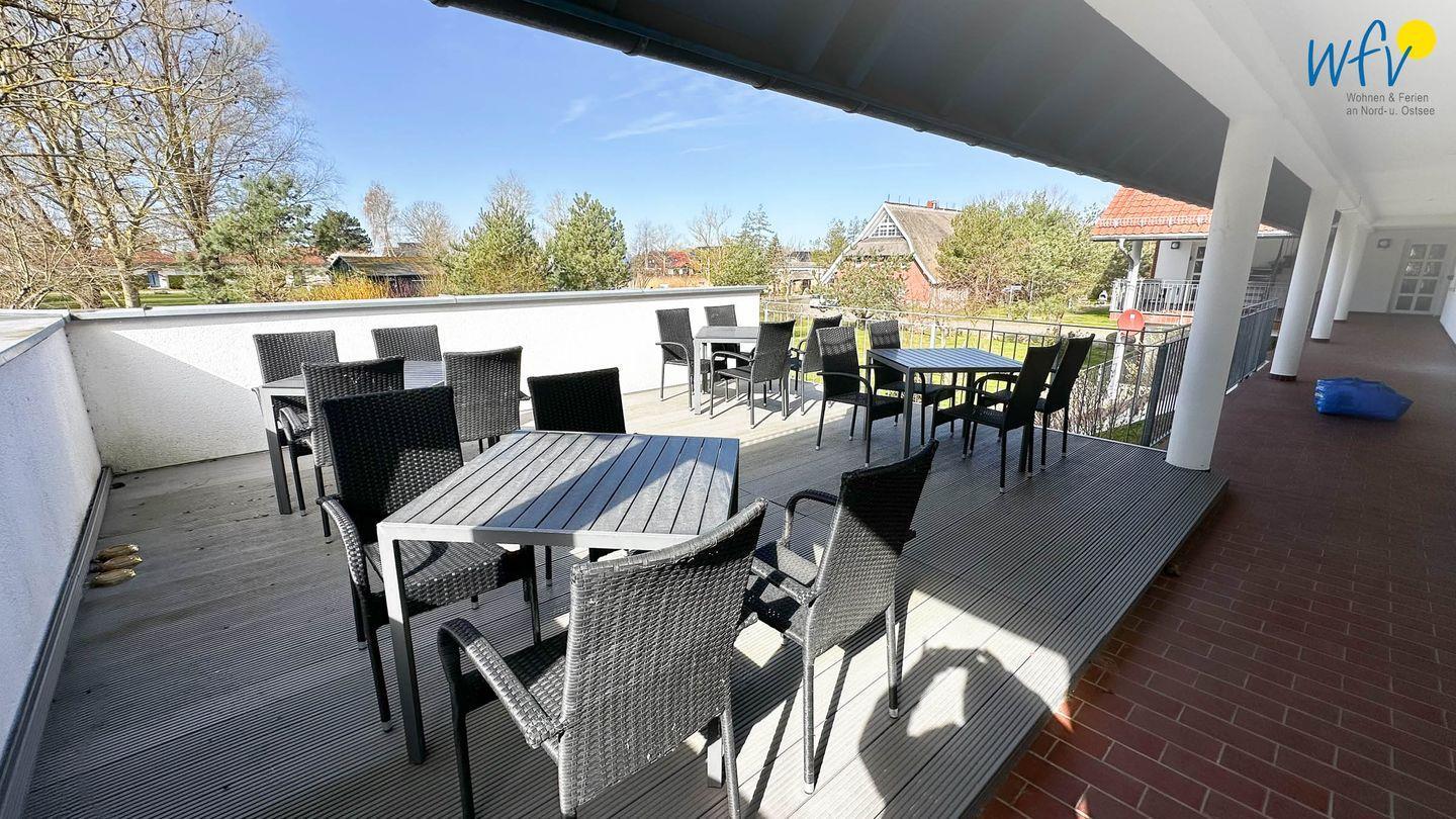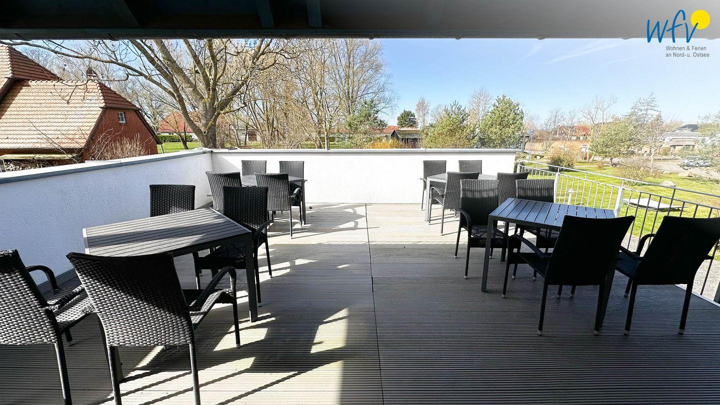 Die große überdachte Gemeinschaftsterrasse bietet Ihnen einen geschützten Bereich, um die wohltuende Ostseeluft zu genießen. Auch der Garten mit Grillplatz lädt zum Entspannen und Verweilen ein.