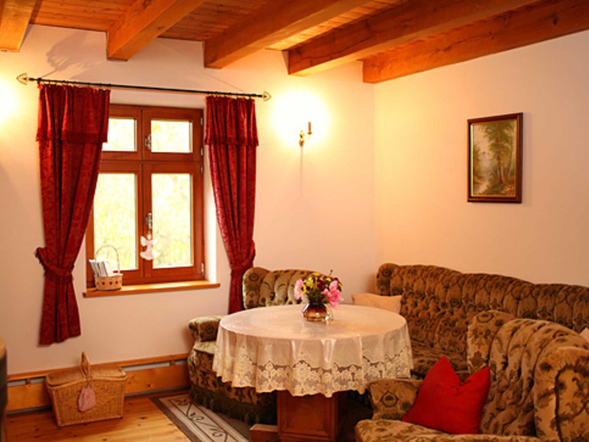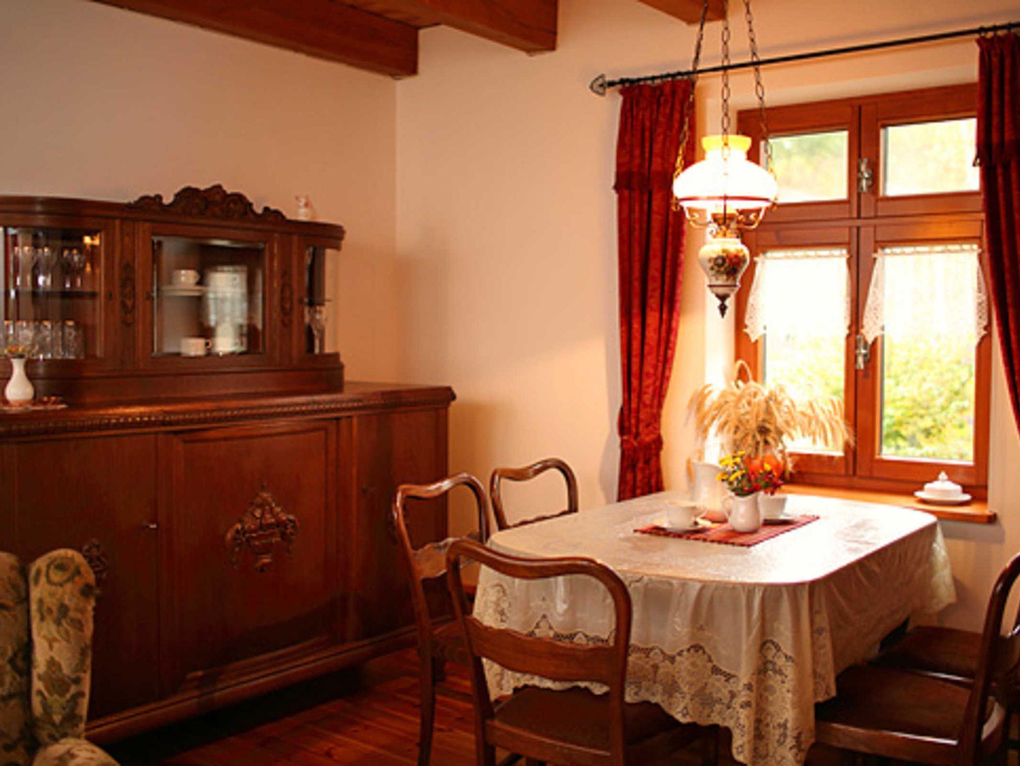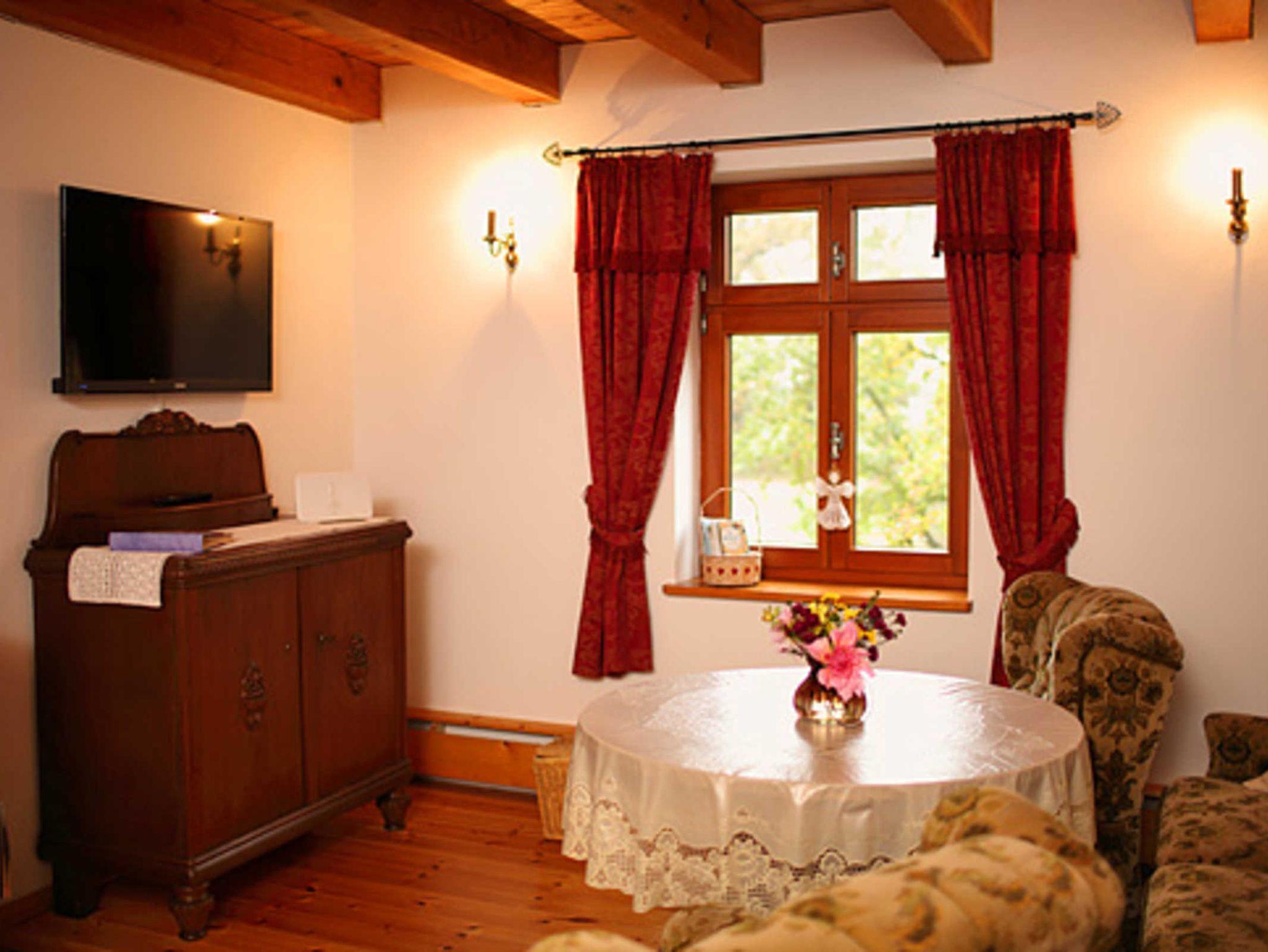 In der guten Stube befinden sich ein Esstisch sowie eine gemütliche Fernsehecke.