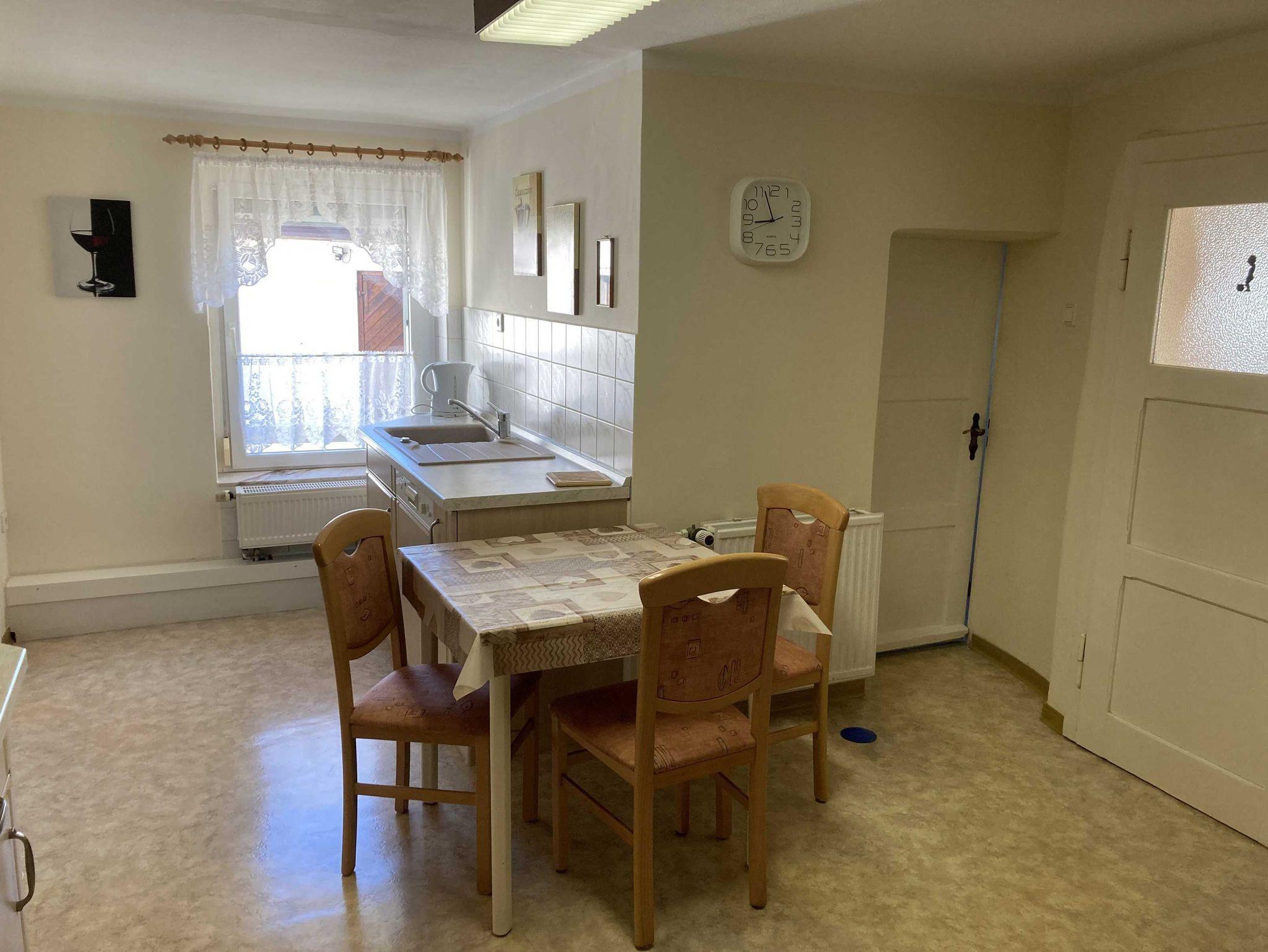 Die Ferienwohnung Helga wurde 2020 saniert und verfügt über zwei Schalfzimmer beide mit einem großen Doppelbett und eines mit einem zusätzlichen Einzelbett, so dass 5 Schlafplätze vorhanden sind. Der Wohn- und Eßbereich ist mit einer Sitzecke, einem Esstisch, einer Couch und einem Fernseher ausgestattet. Die Ferienwohnung Heinz besitzt ein Schlafzimmer, ein Wohnzimmer mit einer Schlafcouch, ein separates kleines Zimmer mit ausziehbarer Couch, Bad und separater Küche. Beide Küchen verfügen über einen E-Herd, Mikrowelle, Toaster, Wasserkocher, Kaffeemaschine, Kühlschrank, Spülmaschine sowie Geschirr, Besteck und Töpfe.