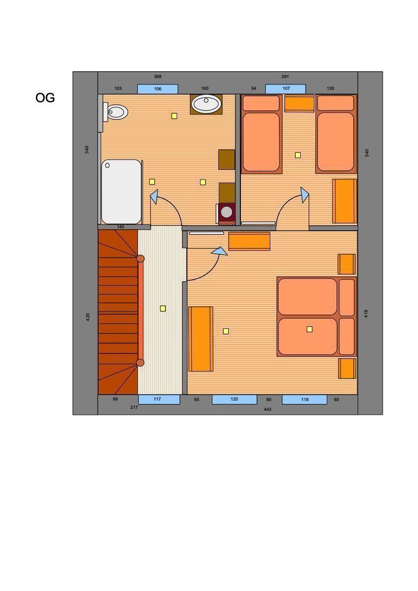 Sleeping facilities: Number of double beds (more than 1,80 m width): 1; Number of single beds: 4