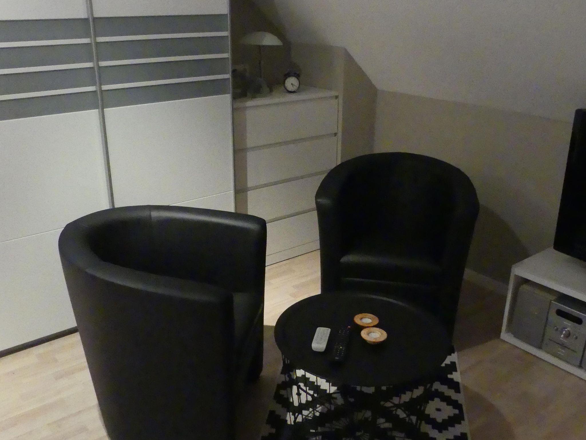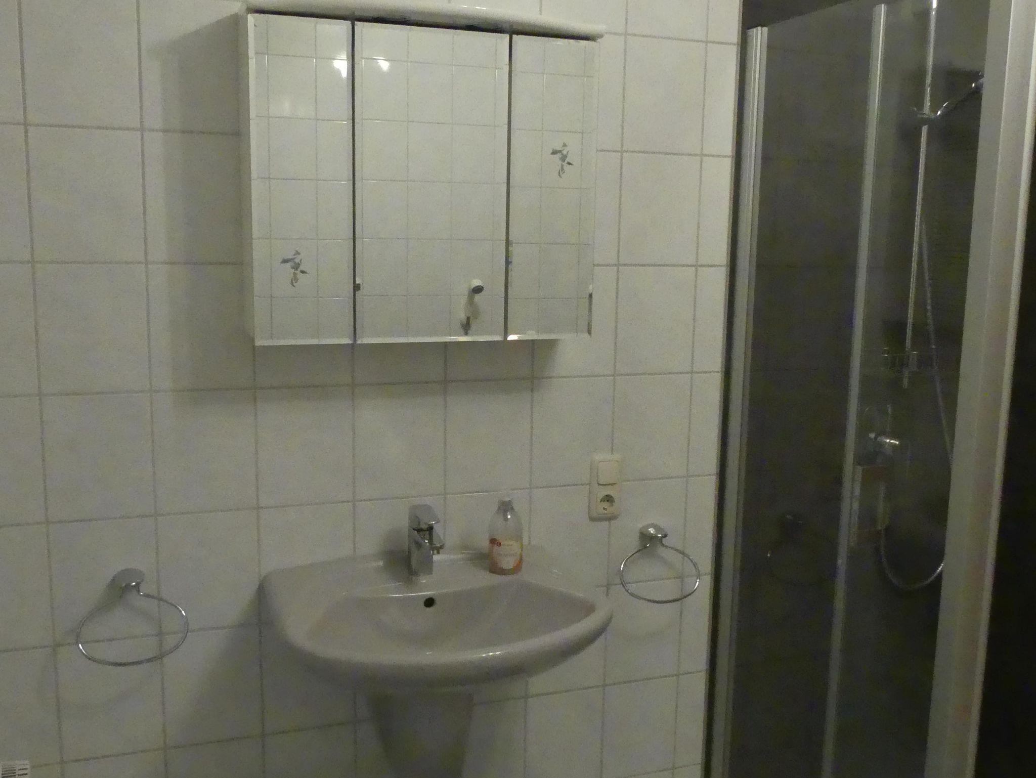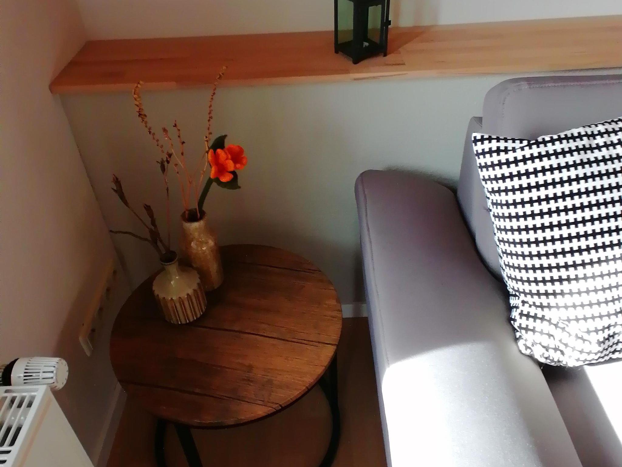 Die Wohnung im Erdgeschoss verfügt neben der Eingangsdiele über ein Schlafzimmer, eine Essküche mit separatem Spind, ein geräumiges behindertengerechtes Badezimmer sowie ein Wohnzimmer mit Zugang zur Terrasse. Im Schlafzimmer befindet sich ein Doppelbett. Im Wohnzimmer, das mit Flachbildschirm, Stereoanlage und Internetzugang ( Telekom Hotspot ) ausgestattet ist, können 2 Personen auf einer Schlafcouch übernachten. So haben in der Wohnung max. 4 Personen Platz.