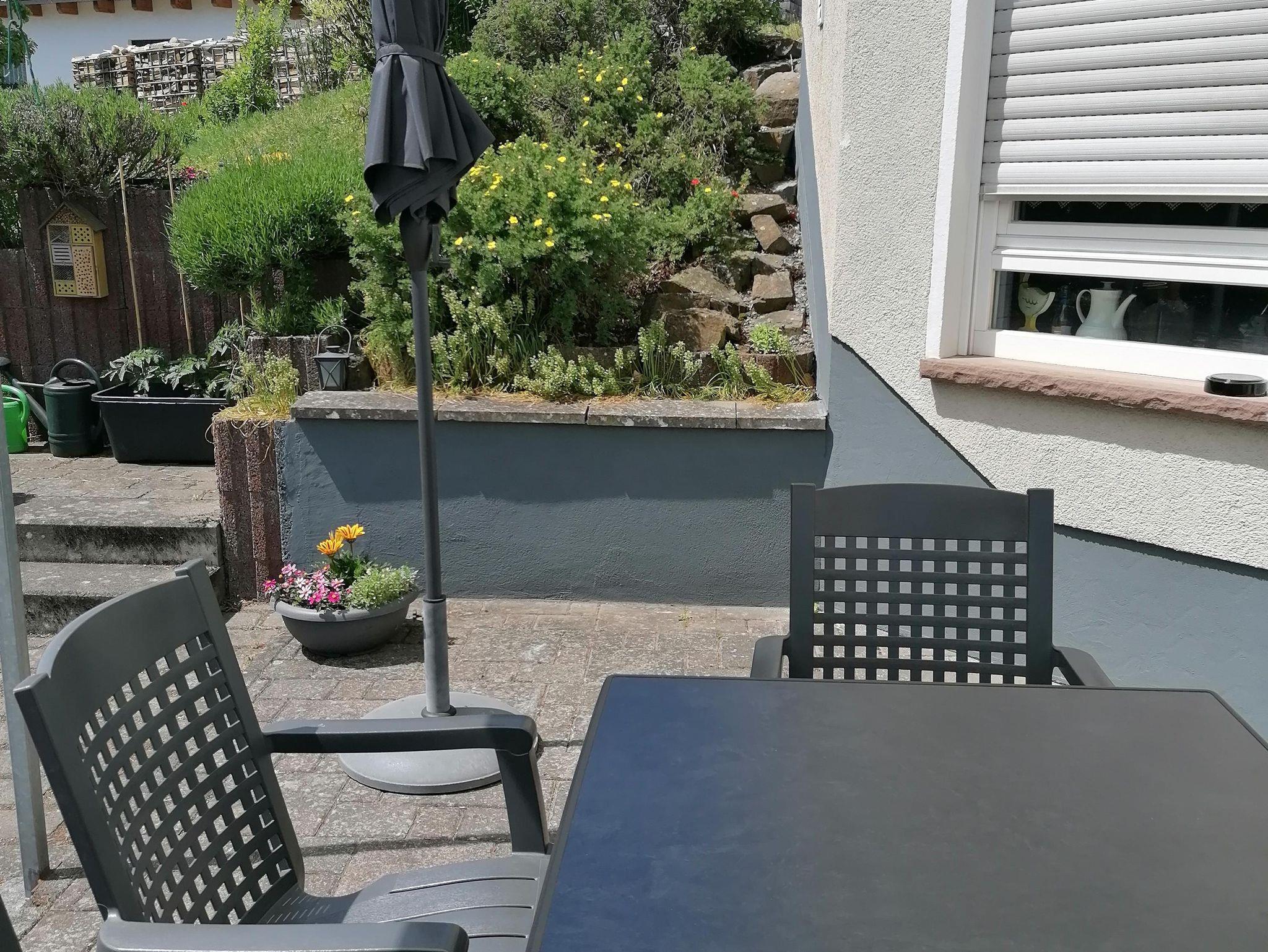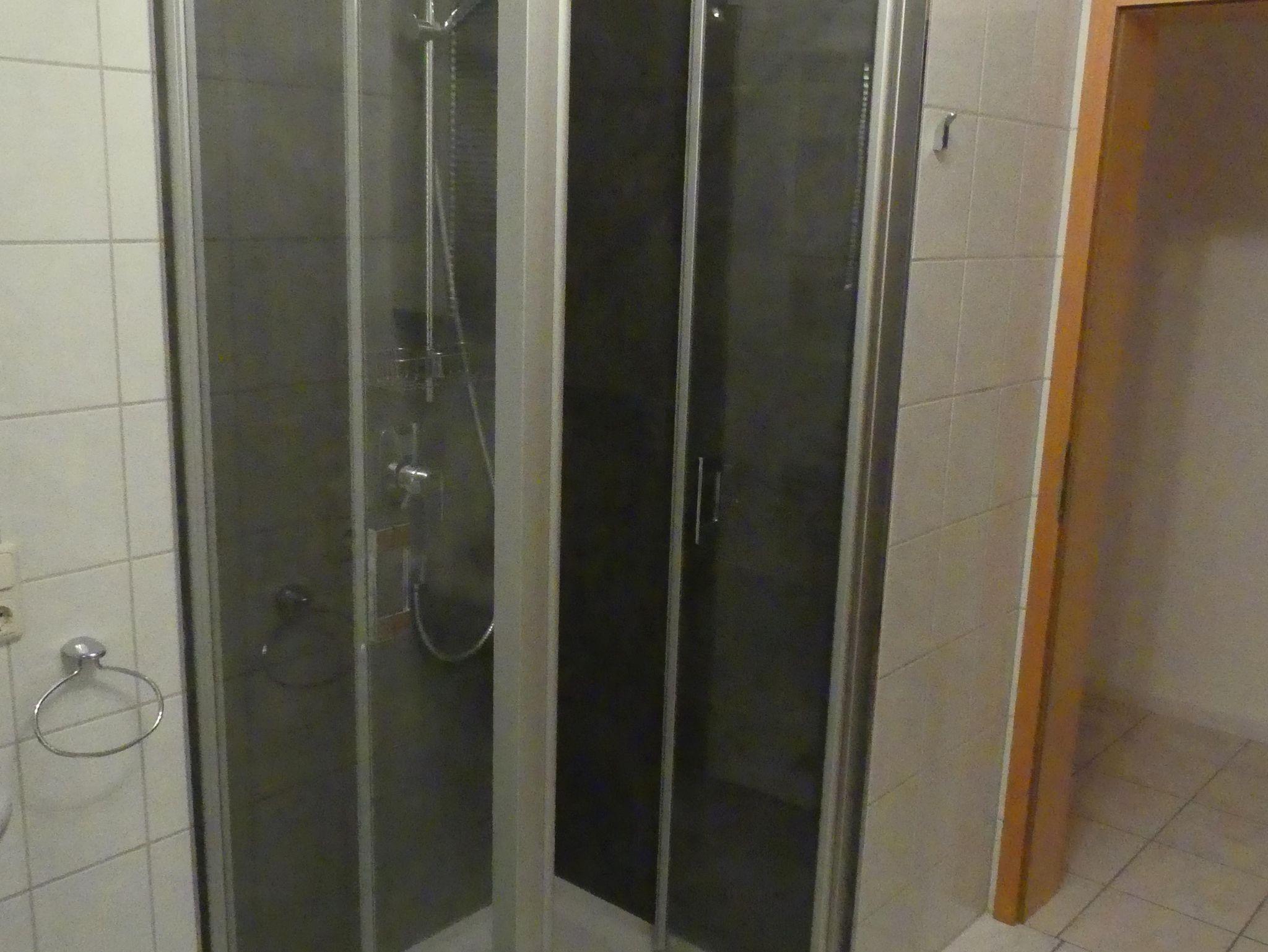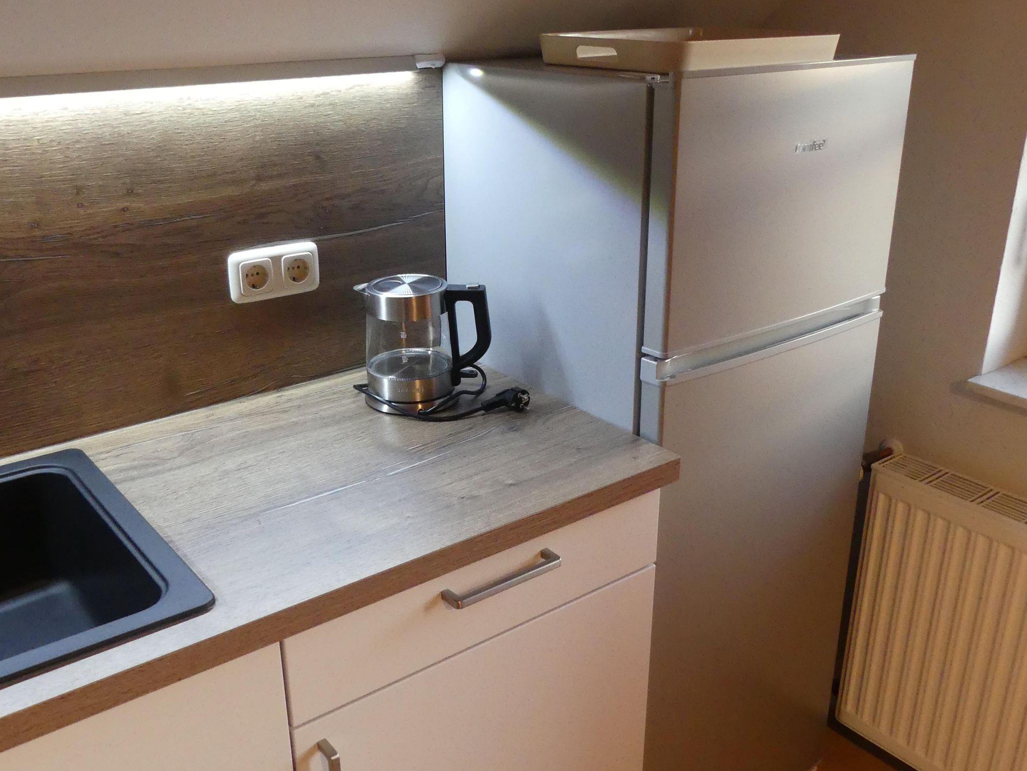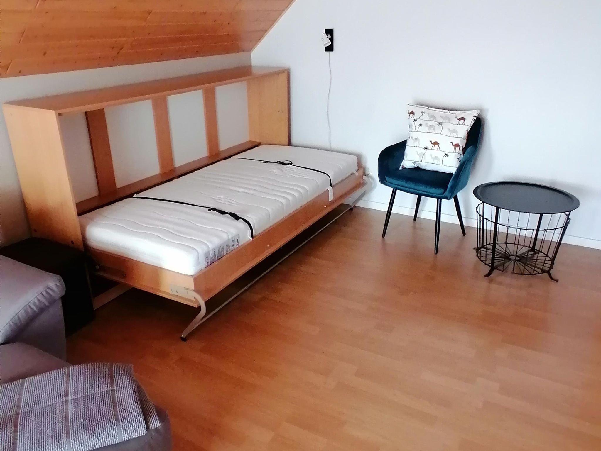 Die Wohnung im Erdgeschoss verfügt neben der Eingangsdiele über ein Schlafzimmer, eine Essküche mit separatem Spind, ein geräumiges behindertengerechtes Badezimmer sowie ein Wohnzimmer mit Zugang zur Terrasse. Im Schlafzimmer befindet sich ein Doppelbett. Im Wohnzimmer, das mit Flachbildschirm, Stereoanlage und Internetzugang ( Telekom Hotspot ) ausgestattet ist, können 2 Personen auf einer Schlafcouch übernachten. So haben in der Wohnung max. 4 Personen Platz.