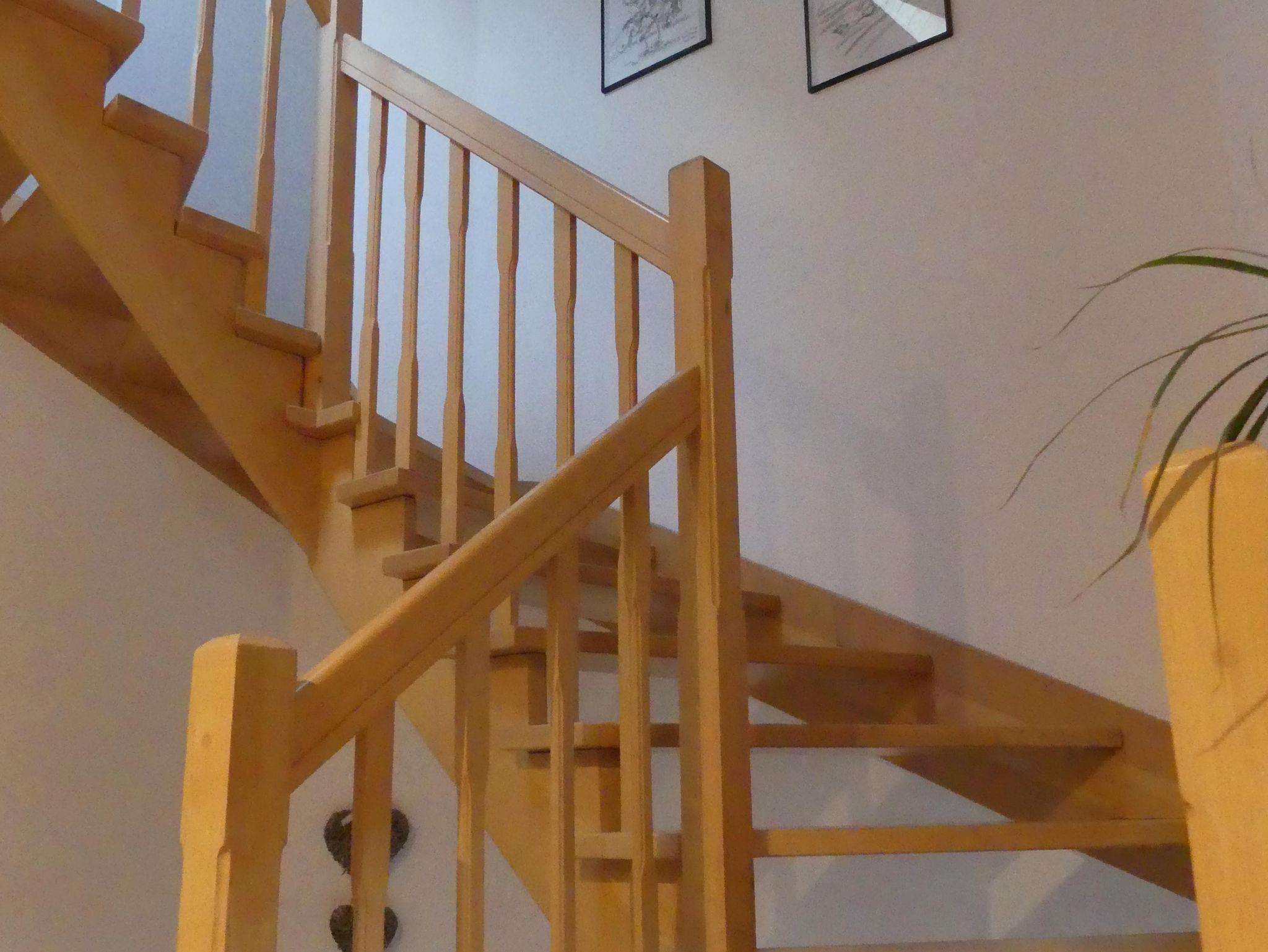 Unsere 2022 neu entstandene Ferienwohnung im Dachgeschoss erreichen Sie über ein abgeschlossenes Treppenhaus.