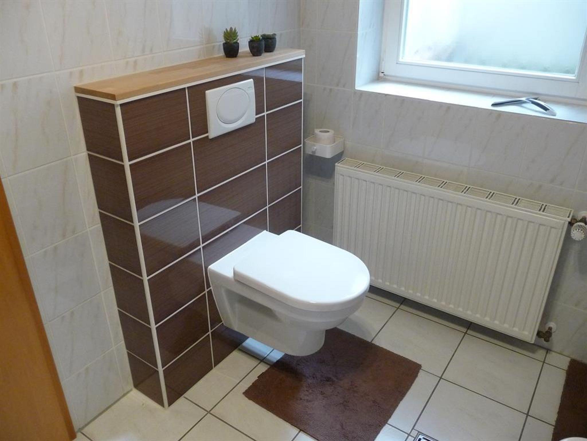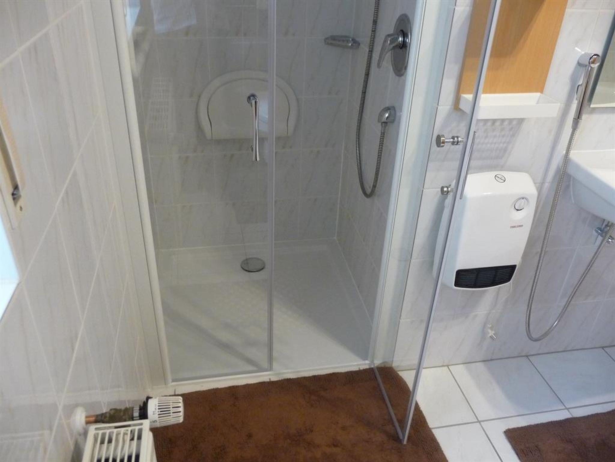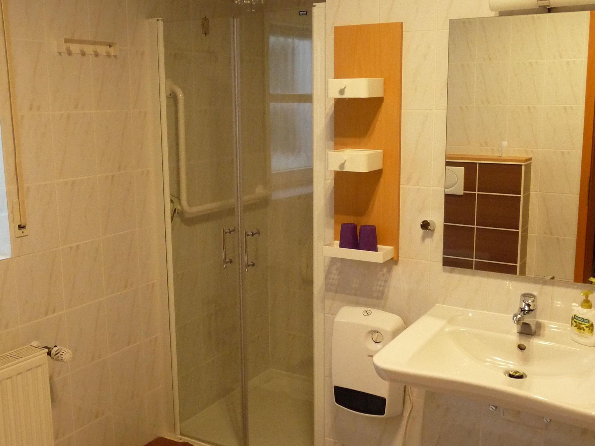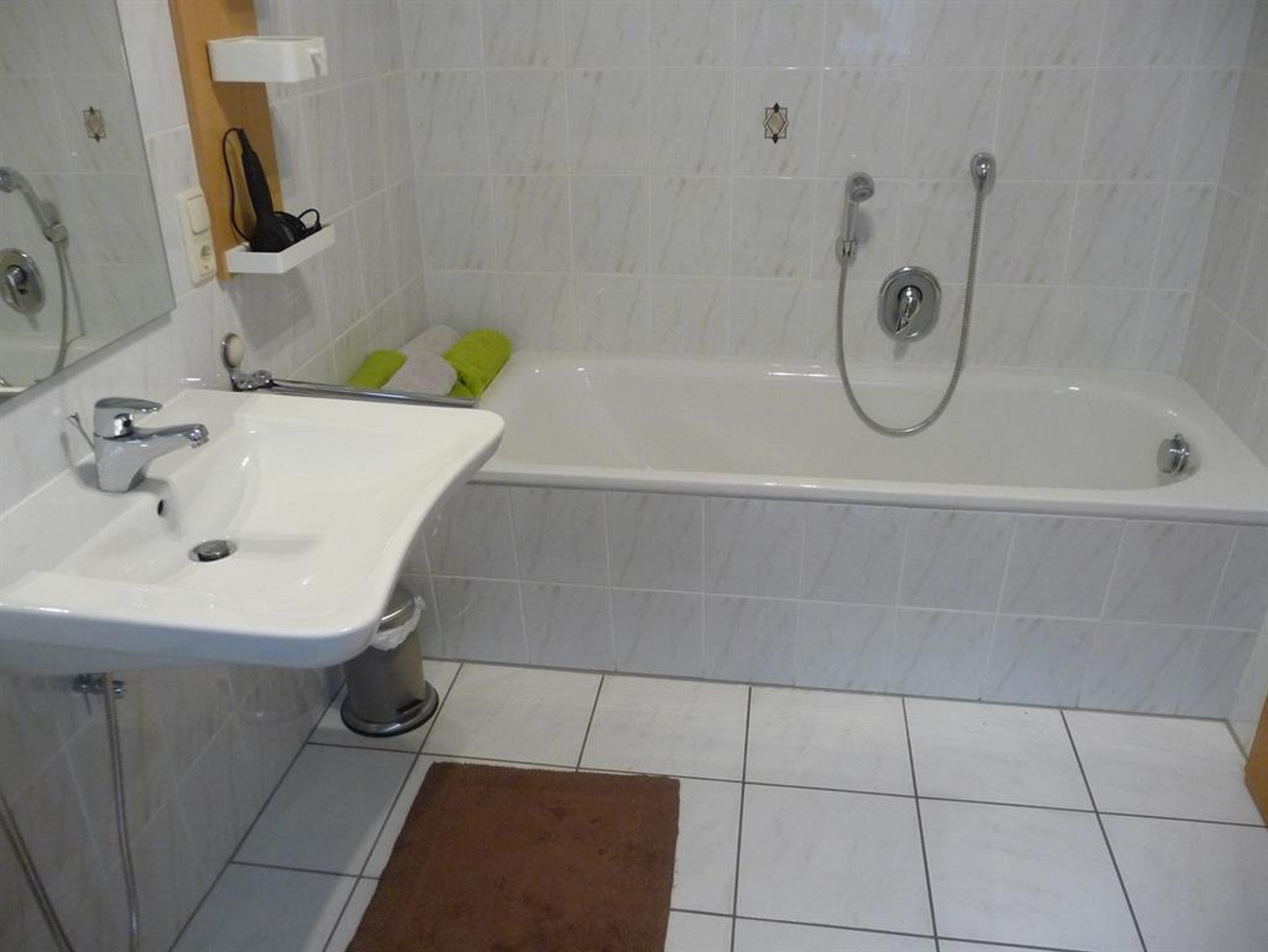 Die Wohnung im Erdgeschoss verfügt neben der Eingangsdiele über ein Schlafzimmer, eine Essküche mit separatem Spind, ein geräumiges behindertengerechtes Badezimmer sowie ein Wohnzimmer mit Zugang zur Terrasse. Im Schlafzimmer befindet sich ein Doppelbett. Im Wohnzimmer, das mit Flachbildschirm, Stereoanlage und Internetzugang ( Telekom Hotspot ) ausgestattet ist, können 2 Personen auf einer Schlafcouch übernachten. So haben in der Wohnung max. 4 Personen Platz.
