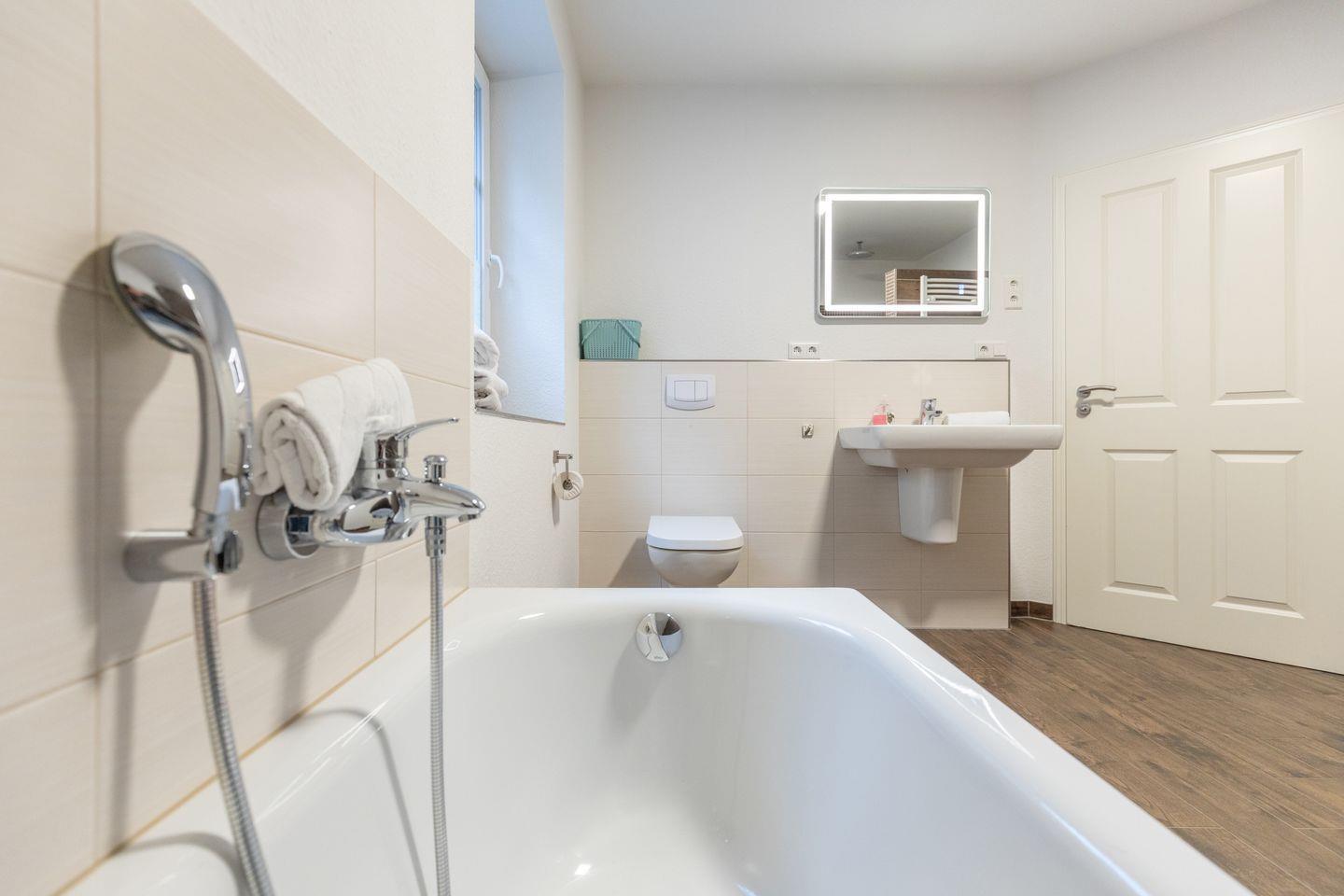Im gemütlichen Wohnzimmer können Sie vor dem Flachbild-TV oder aber bei einem guten Buch den Tag entspannt ausklingen lassen. Der separaten Essbereich eignet sich hervorragend für ein üppiges Frühstück in der Familienrunde. Das große Badezimmer mit Dusche und Badezimmer rundet das Bild ab. Eine Waschmaschine steht zu Ihrer freien Verfügung.