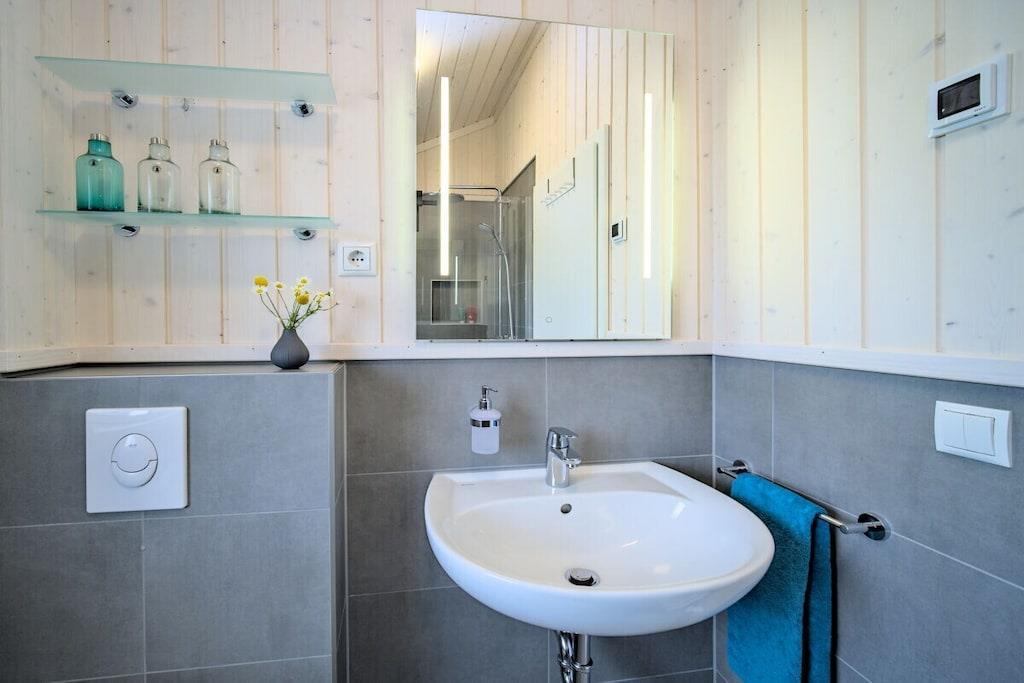 Vores Lille Traehus, skandinavisk for "lille træhus", ligger på den vestlige del af øen Rügen, ikke langt fra Kubizer Bodden i den lille by Dreschvitz. Det er et fritliggende feriehus bygget i 2021, baseret på skandinavisk design. Med sine stilfulde møbler tilbyder det alt, hvad du behøver for en afslappende ferie for op til 4 personer i en rolig beliggenhed på 60 m². Feriehuset ligger væk fra turistattraktioner i landlige omgivelser, hvilket gør det til et vidunderligt udgangspunkt for gåture, vandreture og cykelture. Promenaderne og strandene i Binz og Sellin ligger dog kun omkring 30 minutters kørsel væk. Takket være feriehusets beliggenhed på den vestlige del af Rügen vil din afslapning allerede være begyndt på din ankomstdag, mens mange andre stadig kæmper på B96 på vej til deres feriedestination :-)