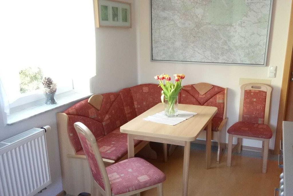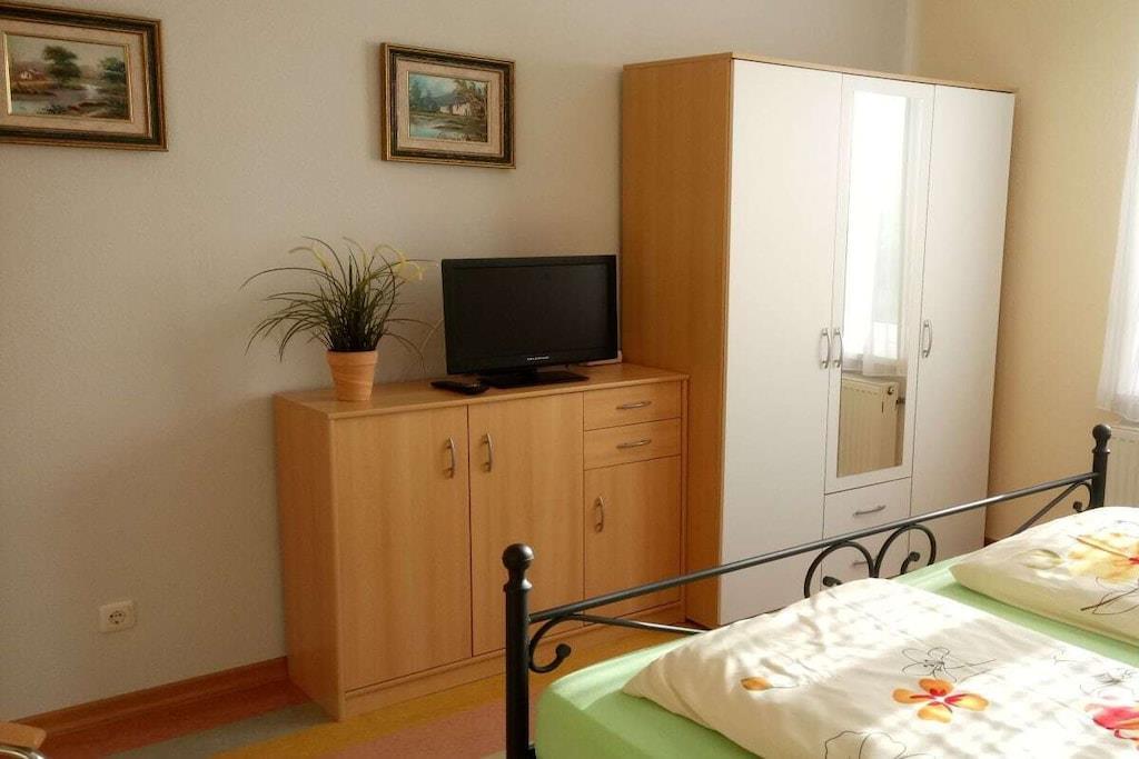 Vores moderne ferielejlighed ligger i den vestlige del af Dresden, centralt, men roligt, i stueetagen af vores tofamiliehus. Den er ideel til 2-5 personer, med mulighed for en ekstra seng til op til 6 gæster. Den har en central stue, 2 soveværelser, et køkken med spiseplads og 2 badeværelser. Lejligheden er hyggelig og komfortabelt møbleret. Den tilbyder hvile og afslapning. Om sommeren kan du nyde morgenmad og grillmad i haven.