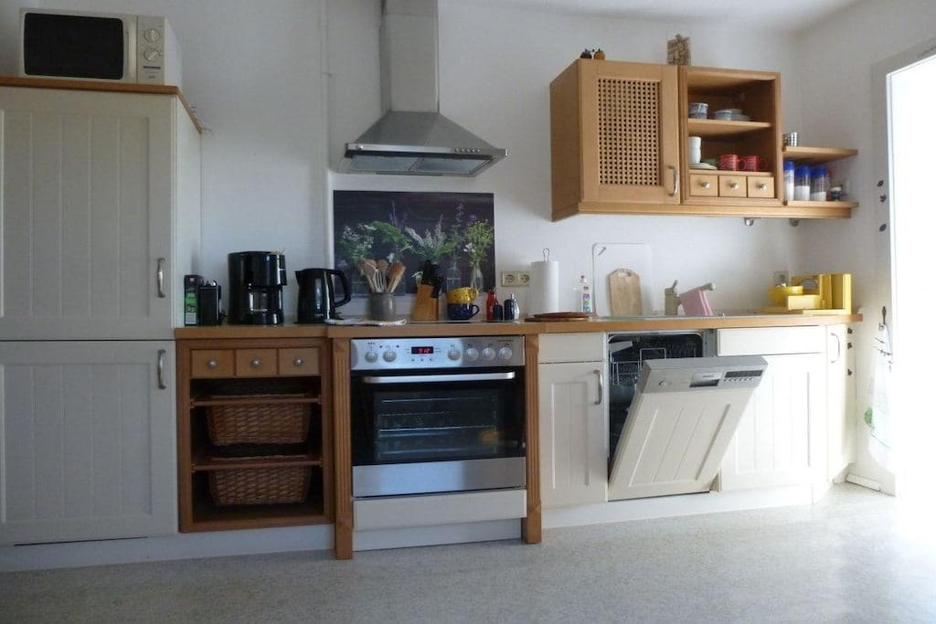 Stueetage: (Stue(enkeltsovesofa, Fjernsyn, DVD-afspiller, CD-afspiller), Køkken(spisebord, kogeplade, elkedel, brødrister, kaffemaskine, ovn, mikrobølgeovn, opvaskemaskine , køleskab, fryser, ), soveværelse(dobbeltseng), badeværelse(bruser, håndvask, føntørrer)) Internetadgang, Internetadgang
