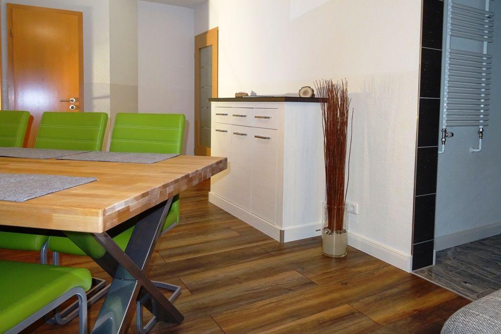 The spacious living area is furnished with a sofa bed with an additional sleeping function. This allows the flat to be extended for two more people. The living area is also equipped with a large LED TV (49 inch). Two HDMI cables are pre-installed on the LED TV for your games console. Plug it in and off you go.