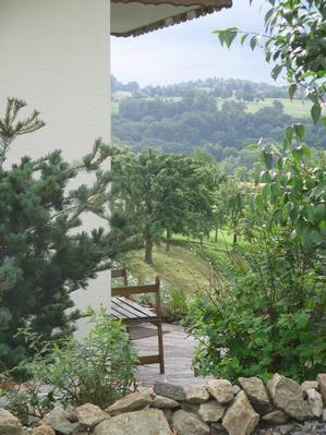 Our house is situated on a quiet hillside high above the Elbe with a beautiful view of the Elbe valley and the Ore Mountains. We rent out the top floor all year round as a holiday flat for visitors to Dresden and anyone else who just wants to relax. The flat has two rooms - a bedroom with a double bed and a cosy living room with a pull-out couch, TV, DVD player, books, magazines, maps and information material as well as games for rainy days. The fully equipped kitchen (fridge, cooker, sink, microwave, coffee machine, kettle) with sitting area offers the opportunity to cook for yourself if you don't want to eat out. Directly off the kitchen is a balcony where you can enjoy the wonderful countryside and sunshine in summer. The rural location close to the city offers ideal conditions for relaxation and culture. While the gentle hills and typical local orchards invite you to take long walks, the state capital with its diverse cultural offerings beckons. A 20-minute walk through a romantic forest gorge takes you directly to Pillnitz Palace and Park, which attracts visitors and locals alike with its festivals and concerts, especially in summer. In addition to Dresden, the surrounding sights are also worth a visit, e.g. Meißen, Stolpen, Moritzburg and Königstein Fortress. If you like hiking, you will find a variety of hiking routes in the Pillnitz vineyards, Saxon Switzerland, the Ore Mountains and Upper Lusatia. Please note that pets are only permitted in this holiday home on request directly from the landlord. Accommodation tax of 6 % of the accommodation costs. Short description 1Number of kitchens : 1