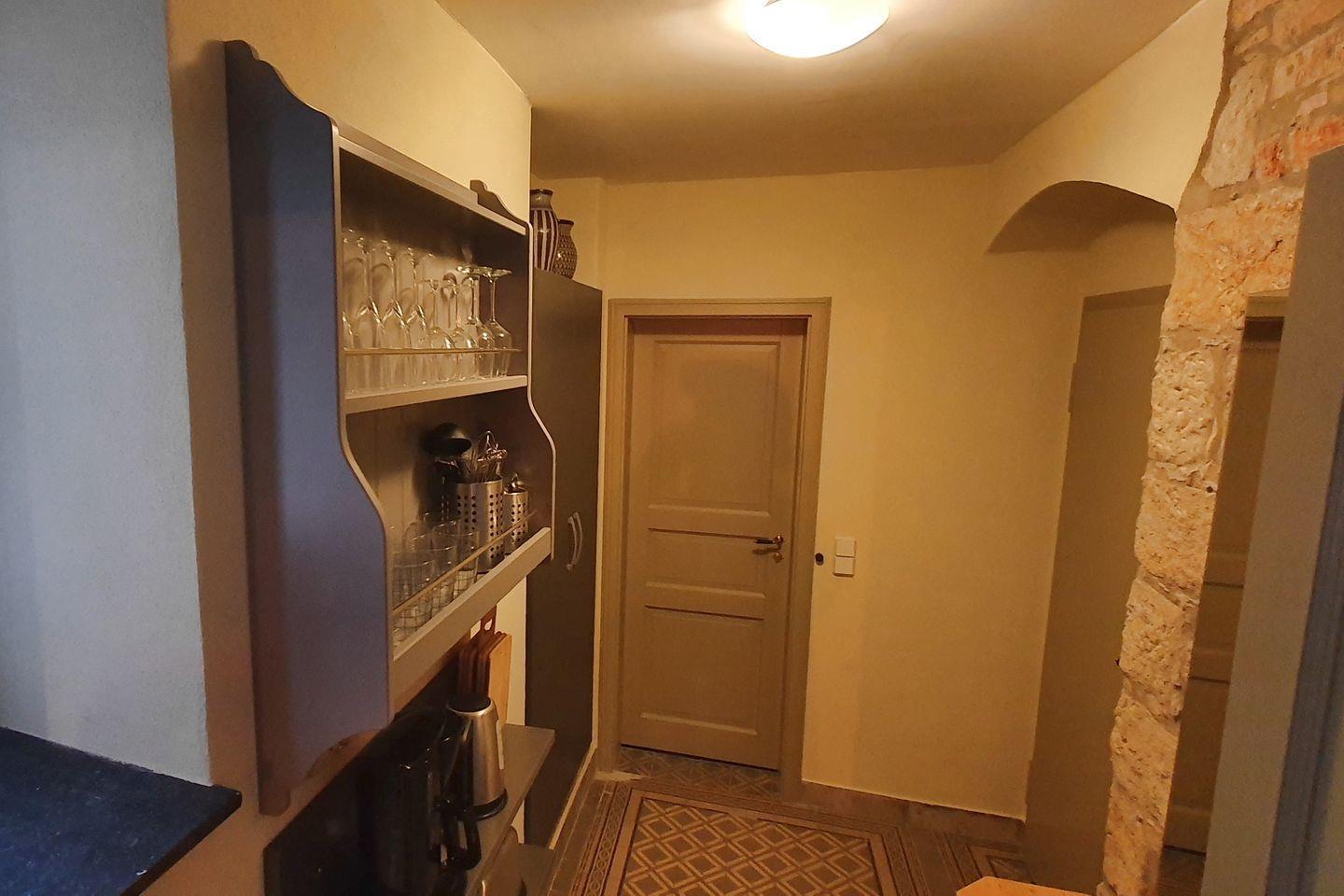 Die Historischen Fliesen stammen noch aus der Zeit, als hier Dienstboten- und Wirtschaftsräume untergebracht waren. Das sorgfältig freigelegte Mauerwerk aus schweren Sandsteinblöcken schafft ein angenehmes Raumklima, im Winter warm - im Sommer kühl. Liebevoll restauriert und mit moderner Technik ergänzt lässt es sich im Apartment Frieda gemütlich und komfortabel wohnen.