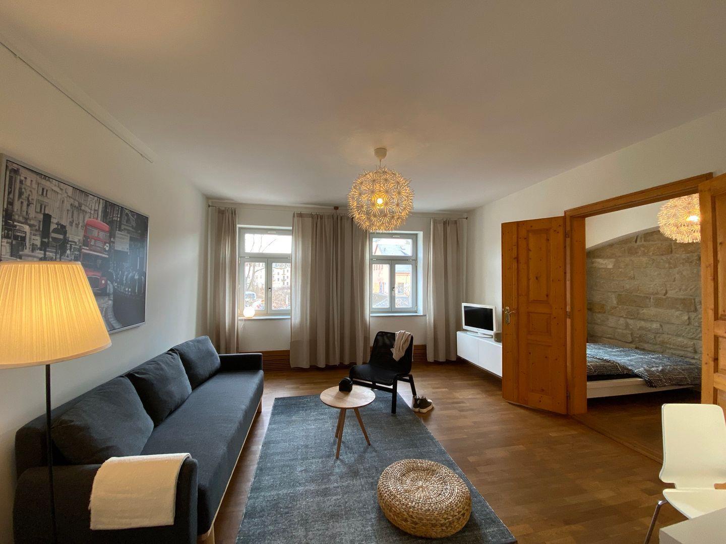 Unsere LOUISE bietet somit Schlafplätze für 3 Personen. Wohnzimmer und Schlafzimmer sind Richtung Alaunstraße gelegen - eine belebte Straße der Dresdner Neustadt, welche zum Schlendern und Ausgehen einlädt. Doppelt verglaste Fenster lassen dennoch ruhig schlafen.