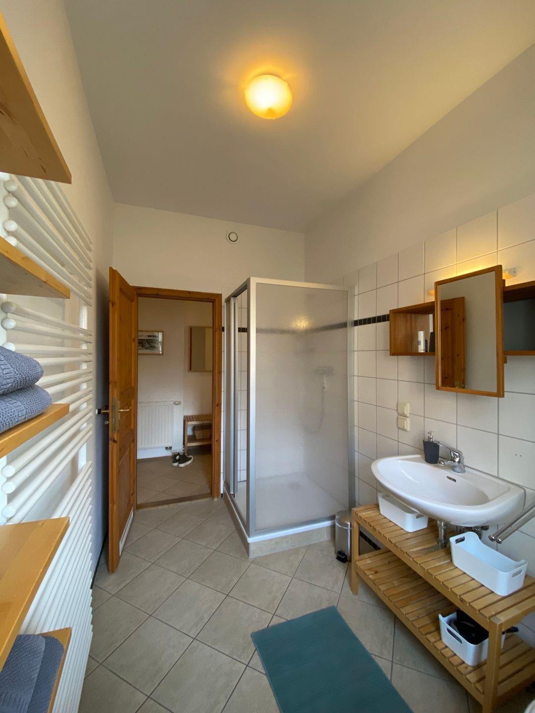 Das Duschbad mit Fenster ist eine kleine Wellness Oase und ideal zum Aufwärmen und Entspannen nach einem langen Spaziergang durch die Stadt.