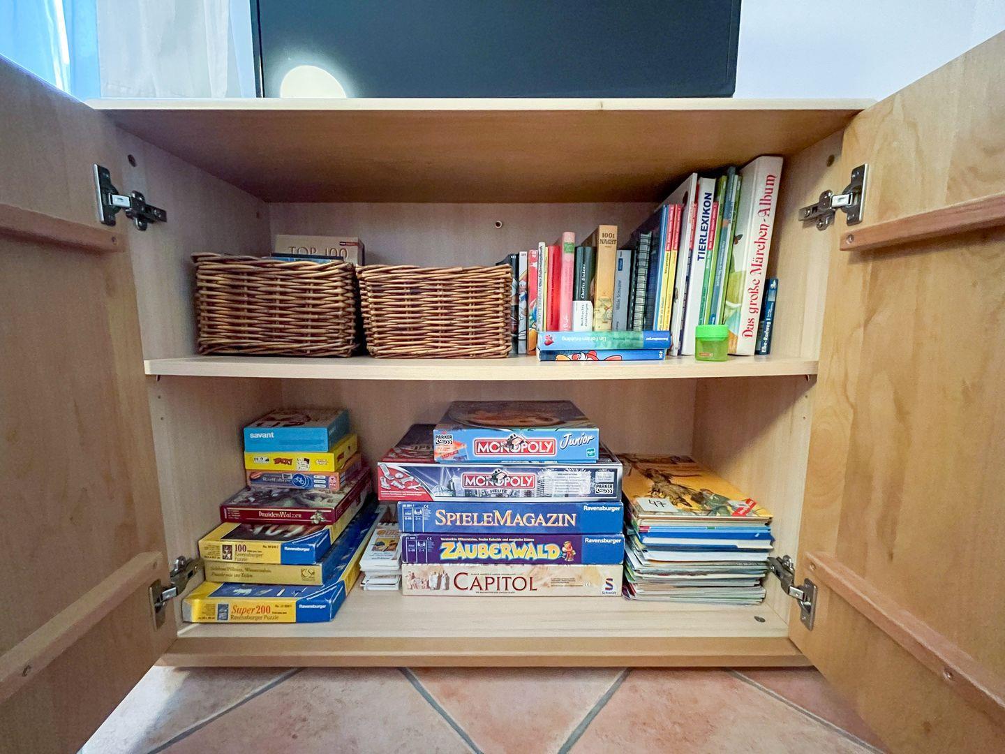 Das Badezimmer ist modern gestaltet und verfügt über eine offene Dusche, ein Waschbecken sowie ein WC. Frische Handtücher und Bettwäsche sind selbstverständlich vorhanden. Auch für die kleinen Gäste ist gesorgt: Hochstuhl und Babybett stehen bereit, damit Sie unbeschwert Ihren Aufenthalt genießen können.
