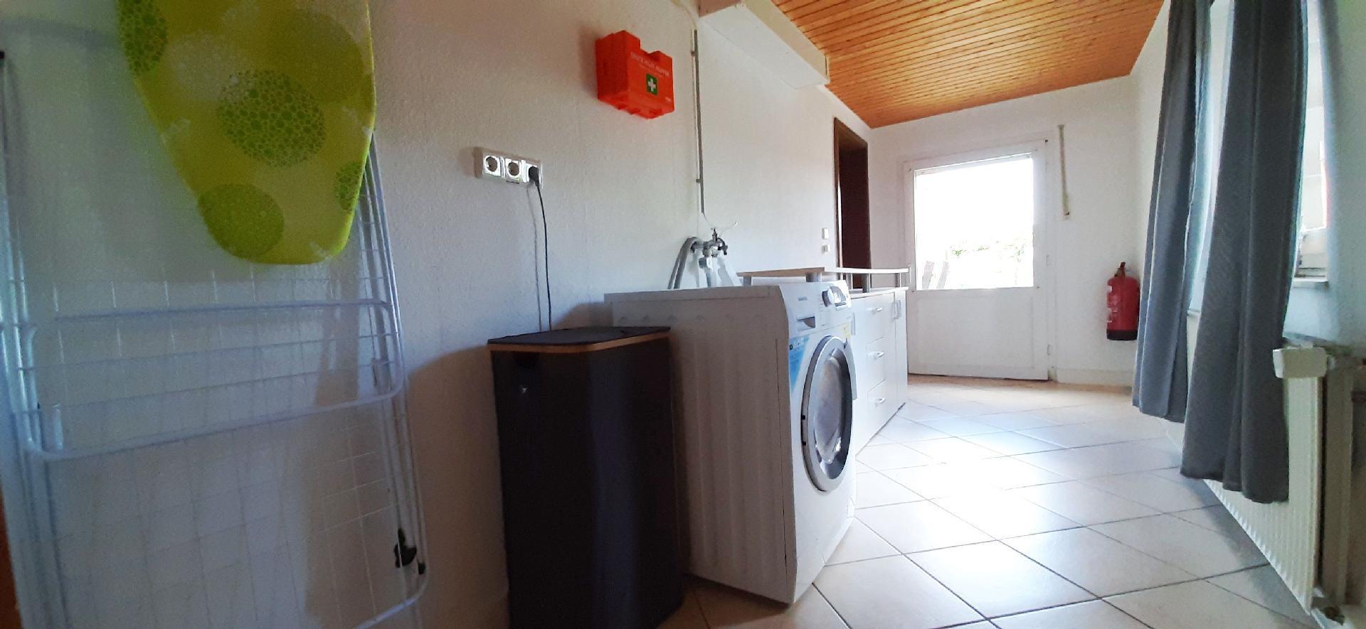 Inside, the holiday home offers a spacious living and dining area, complemented by a fully equipped fitted kitchen. For your comfort, the house has two bathrooms, one upstairs with toilet, shower and natural light, the other downstairs with whirlpool bath including air and water jets, Bluetooth speaker and hairdryer. Three bedrooms, each equipped with a double bed, wardrobe and Smart TV (Smart TV via Mi-Box), offer peaceful nights. Additional sleeping options include an extra bed and a sofa bed option in the living room. Other amenities include a laundry room and a partially heated conservatory equipped with billiards, darts and table football.