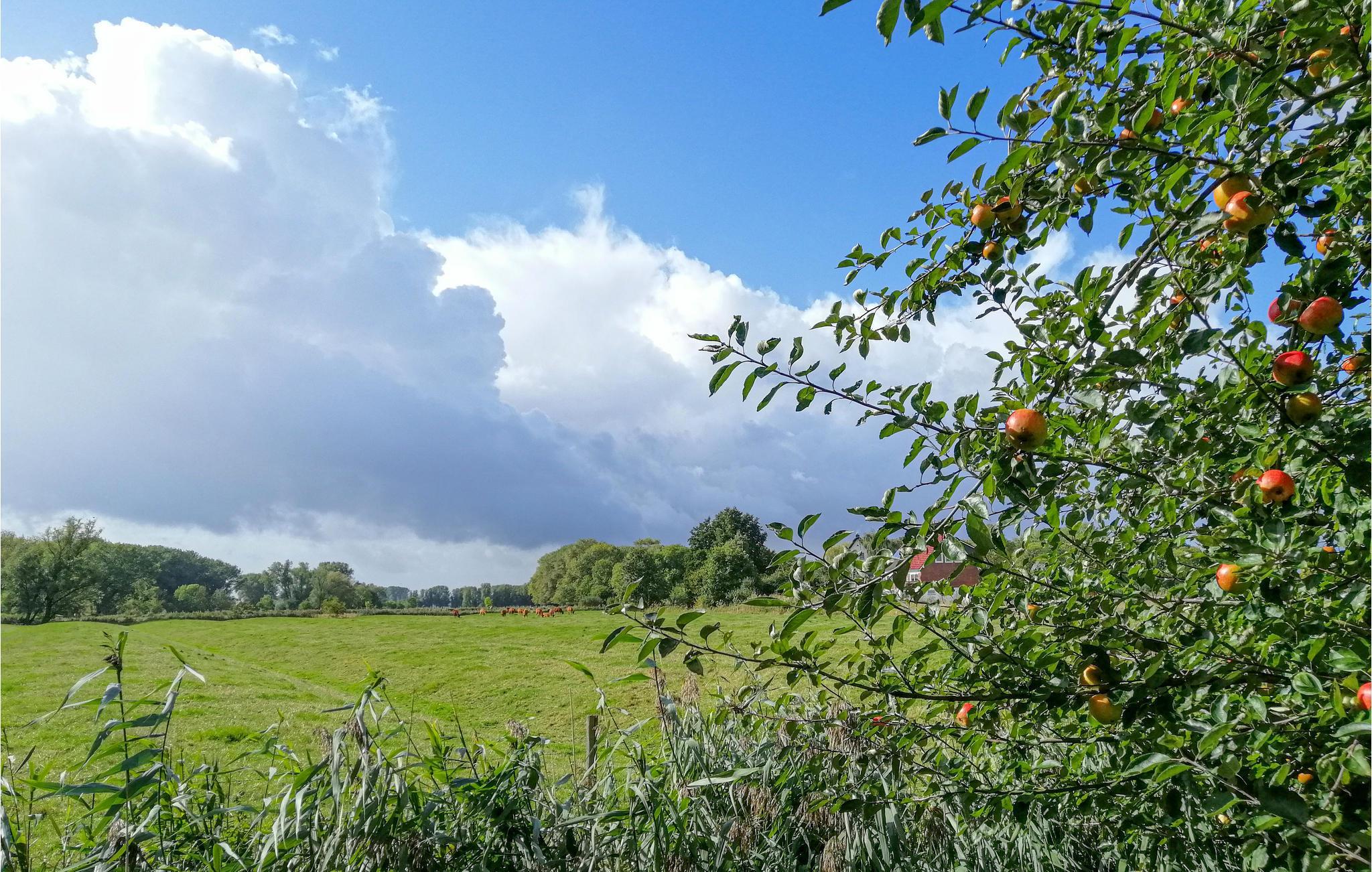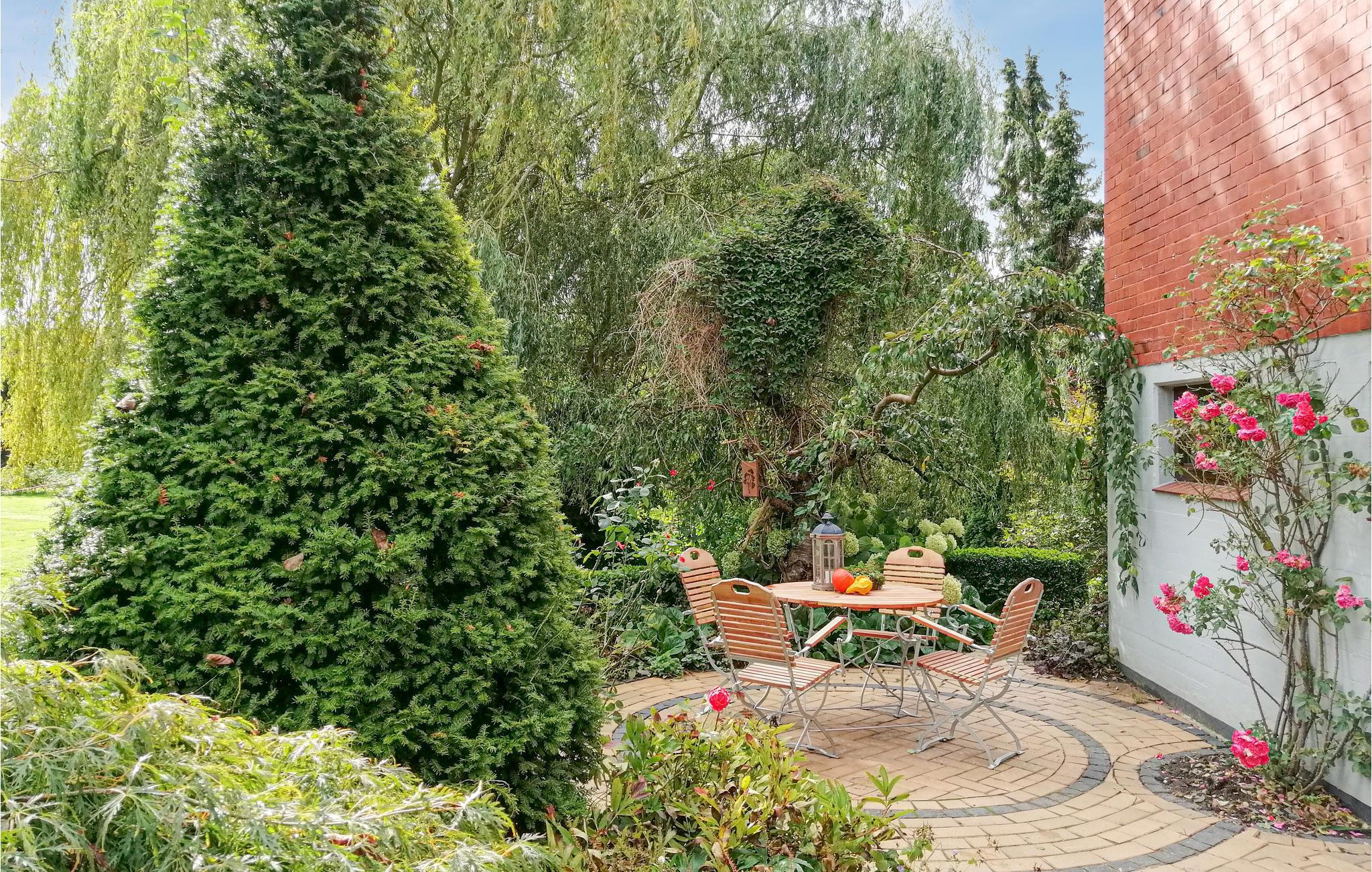 Dette to-etagers dobbelthus tilbyder masser af plads til kortspil, fælles måltider og private ophold for lidt fred og ro. I kan nyde denne rolige oase endnu mere, når I træder ud på terrassen og kigger ud over det store grønne område, hvor I også kan forsyne jer med frugt. Børnene kan boltre sig på den store græsplæne.