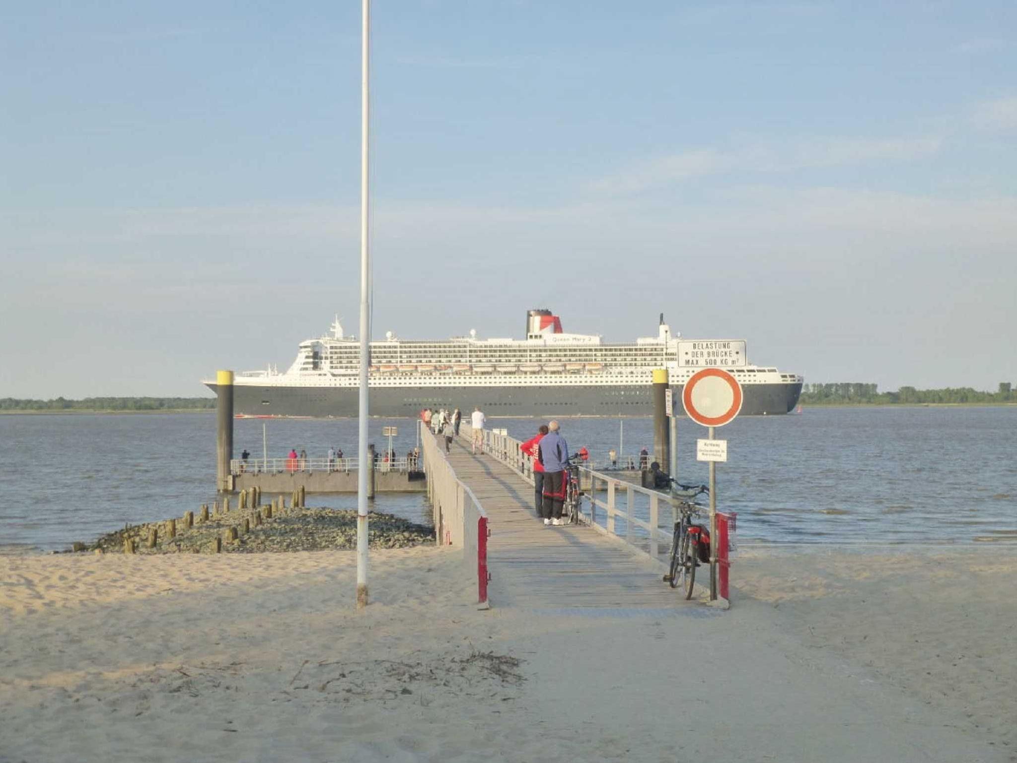 Hirtenund der schöne Sandstrand, der mit den anschließenden Wattflächen ca. 7 km lang ist. Zwischen Deich und Strand bieten Bäume und Weiden Unterschlupf vor Wind, Regen und Sonne. Hier können Sie am herrlichen Sandstrand liegen, in der nahen Fahrrinne die großen und kleinen Schiffe beobachten