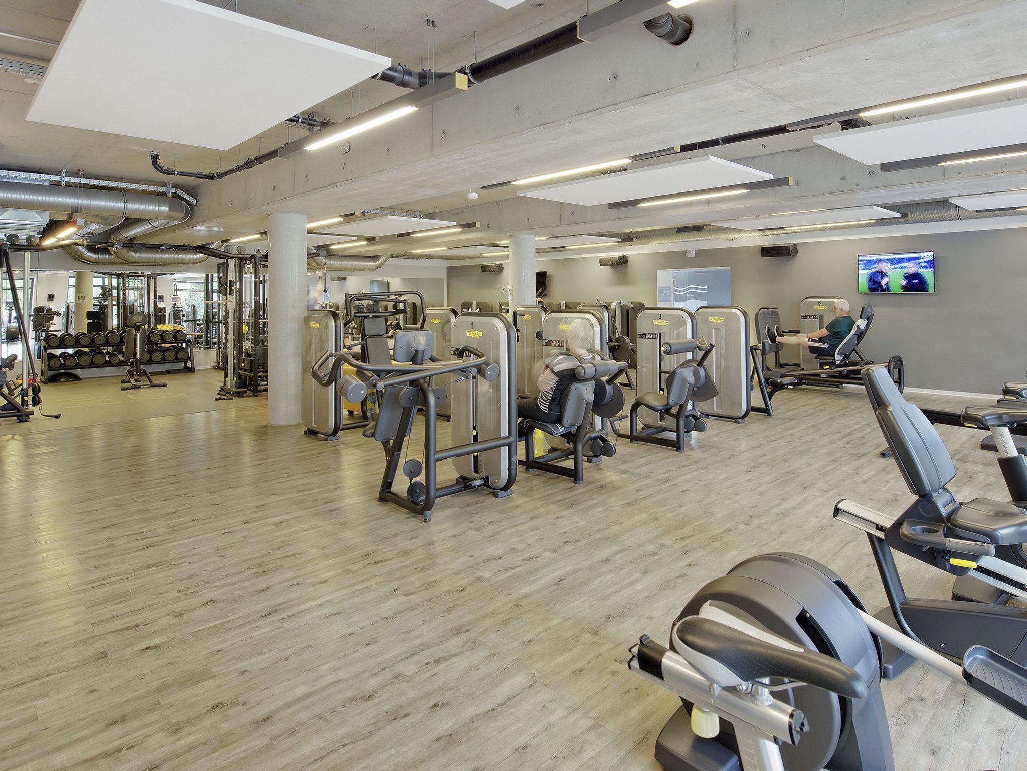 -Waschraum mit Waschmaschinen und Wäschetrocknern