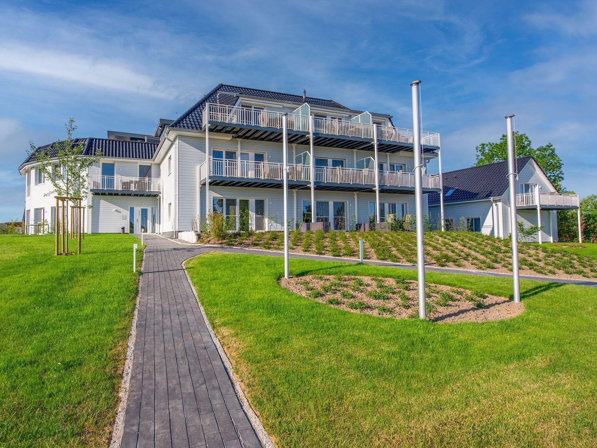 Die Wohnungen der Kategorie D4 R2 im Haus Elbaussicht verfügen über ein separates Schlafzimmer, einen Wohn-, Koch- und Essbereich und einem Balkon mit Elbblick.
