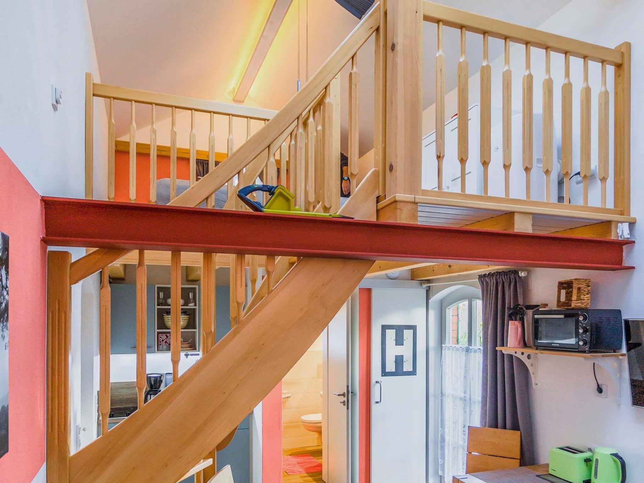Das Ferienhäuschen bietet auf kleinstem Raum alles, was man benötigt: ein Wohnzimmer mit Essbereich und kleiner Küchenzeile (Cerankochfeld, Kühklschrank mit Gefrierfach), ein modernes Bad mit großer Echtglas-Dusche und einem Maisonette-Schlafbereich auf zweiter Ebene mit einem gemütlichen Doppelbett, das auf Wunsch auch in zwei separate Betten umgewandelt werden kann. Von dort schauen Sie durch die Glaslaterne direkt in den Himmel!