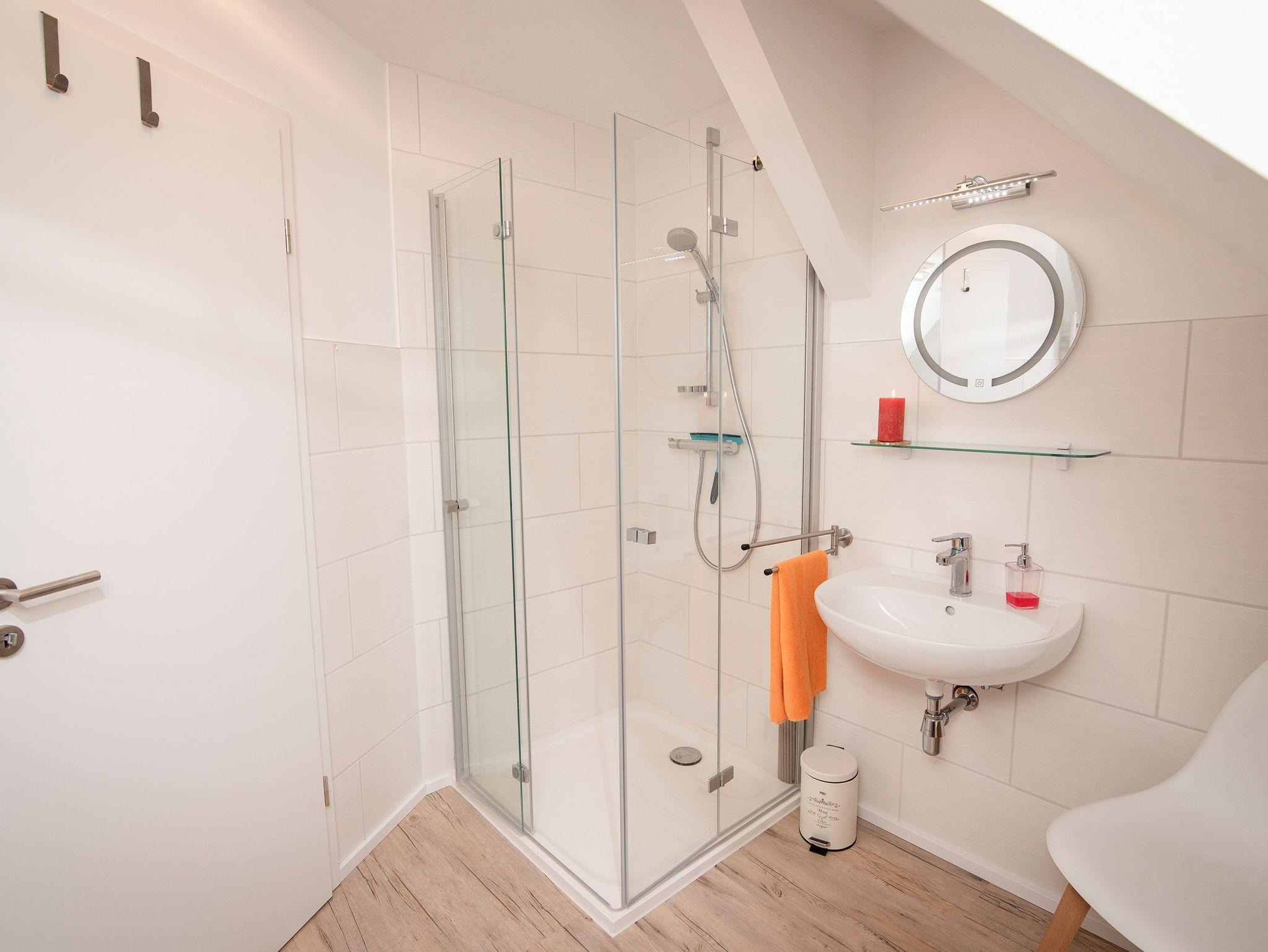 Im Erdgeschoss befinden sich eine moderne, komplett eingerichtete Küche, ein Wohnzimmer und ein Bad mit Dusche/WC. Ein Kinderstuhl ist bei Bedarf vorhanden. In der oberen Etage befinden sich ein Bad mit Dusche/WC, 2 Schlafzimmer mit je einem Doppelbett. Ein weiteres Gästebett sowie ein Kinderbett sind bei Bedarf vorhanden. Auf der 60 m² großen Terrasse mit freistehender Markise können Sie Ihr Frühstück genießen. Dort laden auch Sonnenliegen zum Entspannen ein. Nach einer Tagestour kehren Sie am Abend in Ihr gemütliches Zuhause auf Zeit zurück und lassen je nach Lust und Laune beim Grillen mit dem Gasgrill oder einfach beim Beisammensitzen in der abendlichen Ruhe den Tag erholt ausklingen. Und sollte es einmal regnen - kein Problem. Dann legen Sie einen Lese- oder Spieletag ein. Unsere kleine Bibliothek und unsere Familienspiele laden Sie dazu ein.