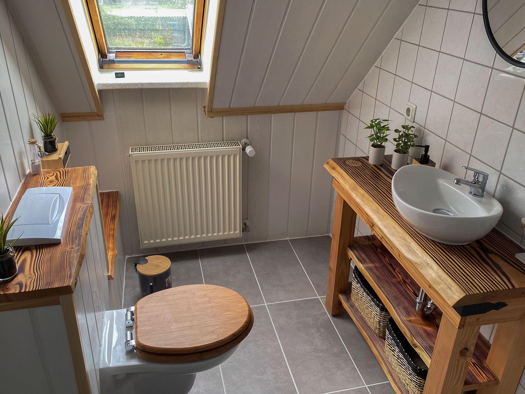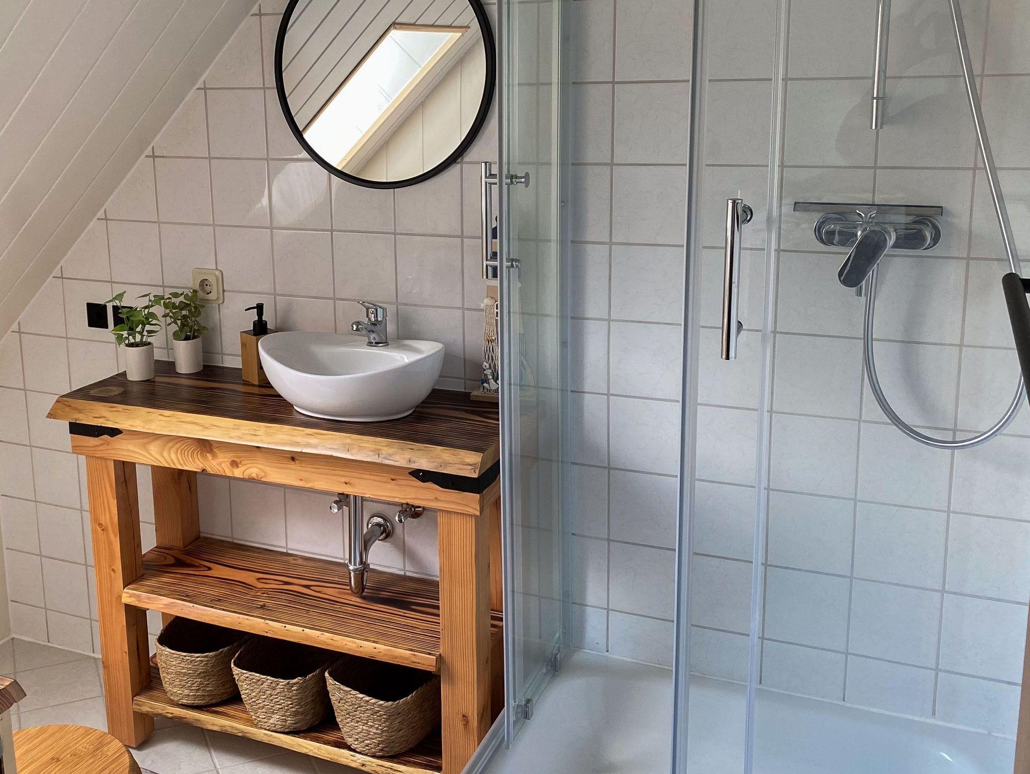 In unserem charmanten Dachgeschoss empfängt Sie ein helles, 19m² großes Pensionszimmer, das die Region in jedem Detail widerspiegelt. Die Einrichtung verbindet gekonnt moderne Gemütlichkeit mit authentischem, vorpommerschem Charakter. Naturbelassene Materialien und handwerkliche Finesse prägen das harmonische Ambiente. Verdunkelungsmöglichkeiten an den Fenstern sorgen für erholsamen Schlaf.