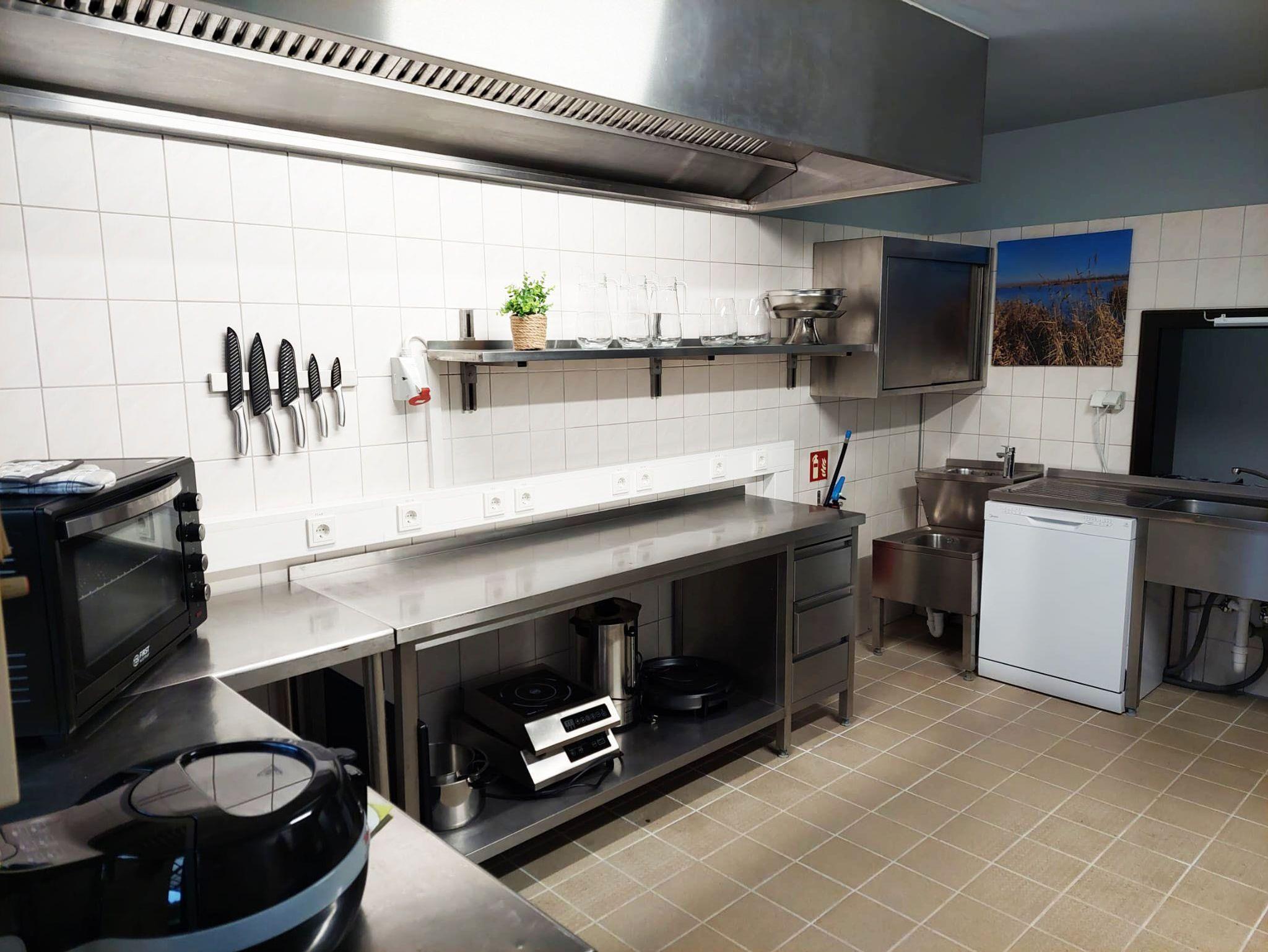 Die Gemeinschaftsküche (kostenpflichtig) ist eine voll ausgestattete Gastroküche, die zum gemeinsamen Kochen und Verweilen einlädt.