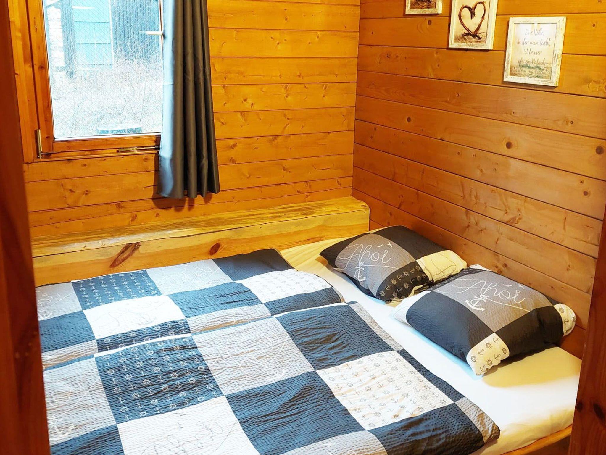 Gemütlicher Holzbungalow mit 25 m² Wohnfläche, ideal für bis zu 4 Personen.
