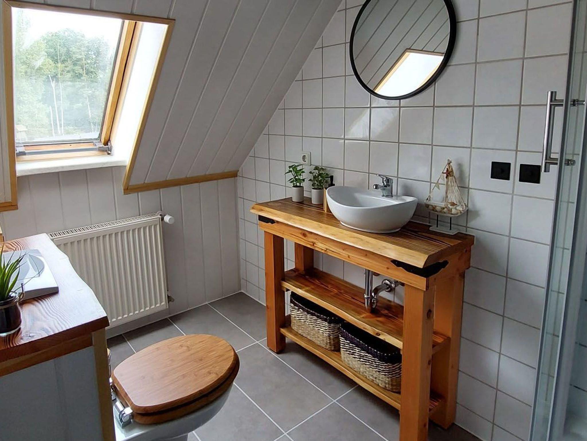 In unserem charmanten Dachgeschoss empfängt Sie ein helles, 19 m² großes Pensionszimmer. Die Einrichtung verbindet gekonnt moderne Gemütlichkeit mit authentischem, vorpommerschem Charakter. Naturbelassene Materialien und handwerkliche Finesse prägen das harmonische Ambiente. Verdunkelungsmöglichkeiten an den Fenstern sorgen für erholsamen Schlaf.