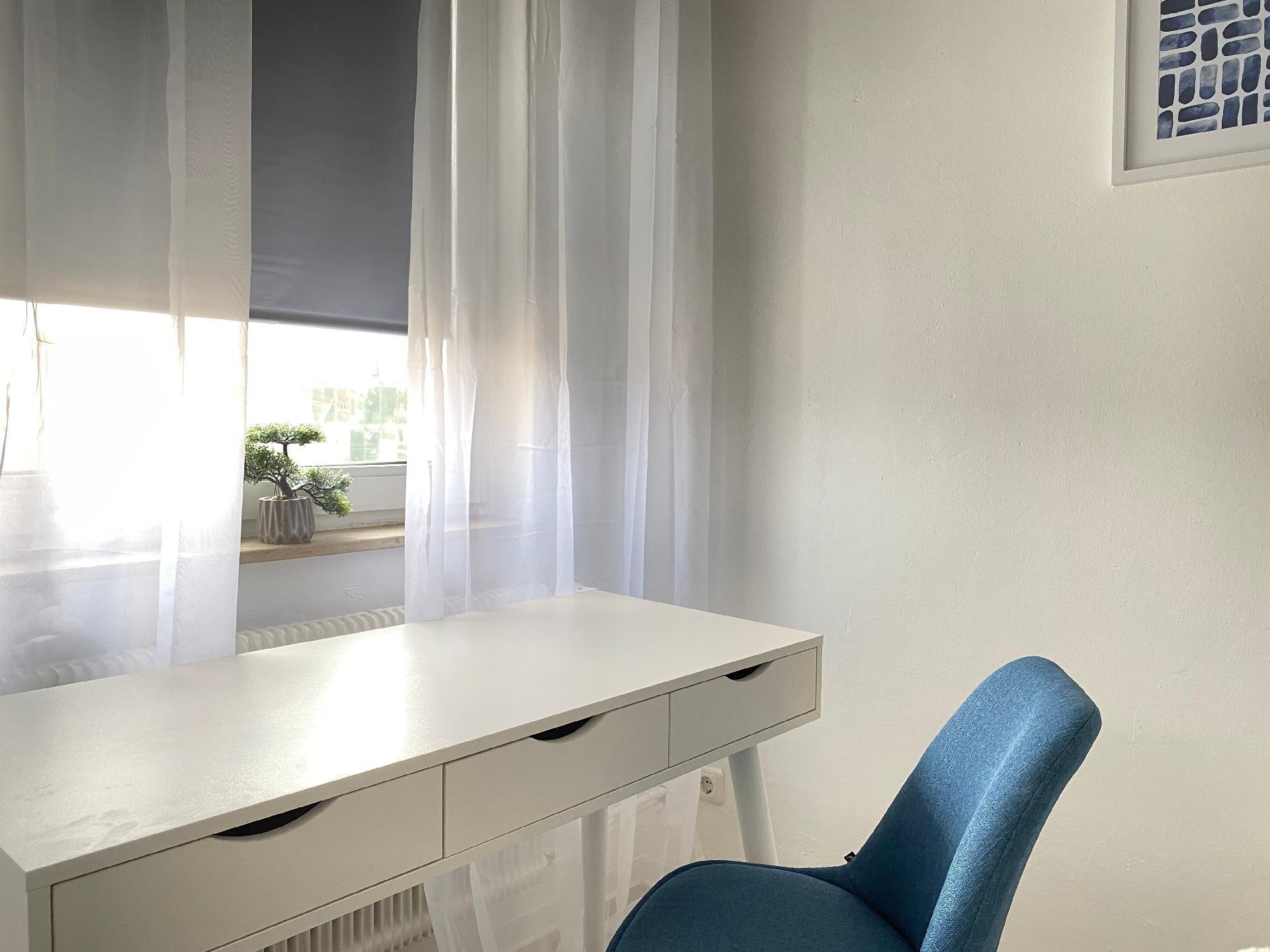 Immerse yourself in the peaceful atmosphere and relax in our sunny flat. Fully equipped for up to 5 people, in a good location and 5 minutes walk from the railway station. The flat has a bedroom, an office with a desk and a large sofa bed as well as a cosy kitchen with additional sleeping space, a washing machine and a dishwasher. There are various supermarkets and an organic food shop close to the house. The town centre with its pedestrian zone and many shops, cafés and restaurants can be reached on foot in 10 minutes. The flat is very conveniently located for quick and easy access to all cities in the Ruhr area and all parts of Duisburg, such as the harbour. The campus of the University of Duisburg-Essen is only 2 tram stops away.