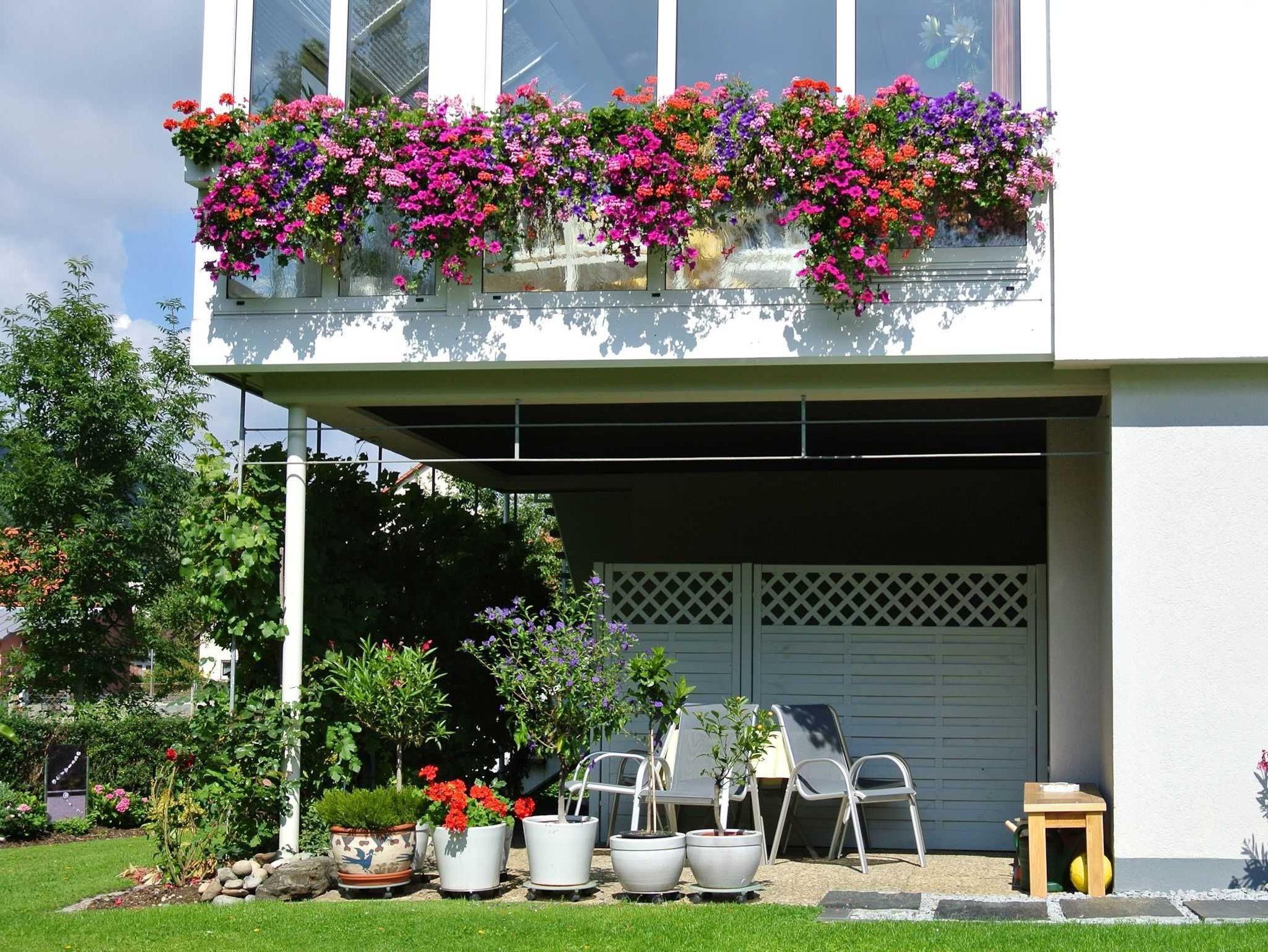 Eine möblierte überdachte Terrasse, Liegewiese, Liegestühle und eine eigene Garage stehen zur Verfügung.