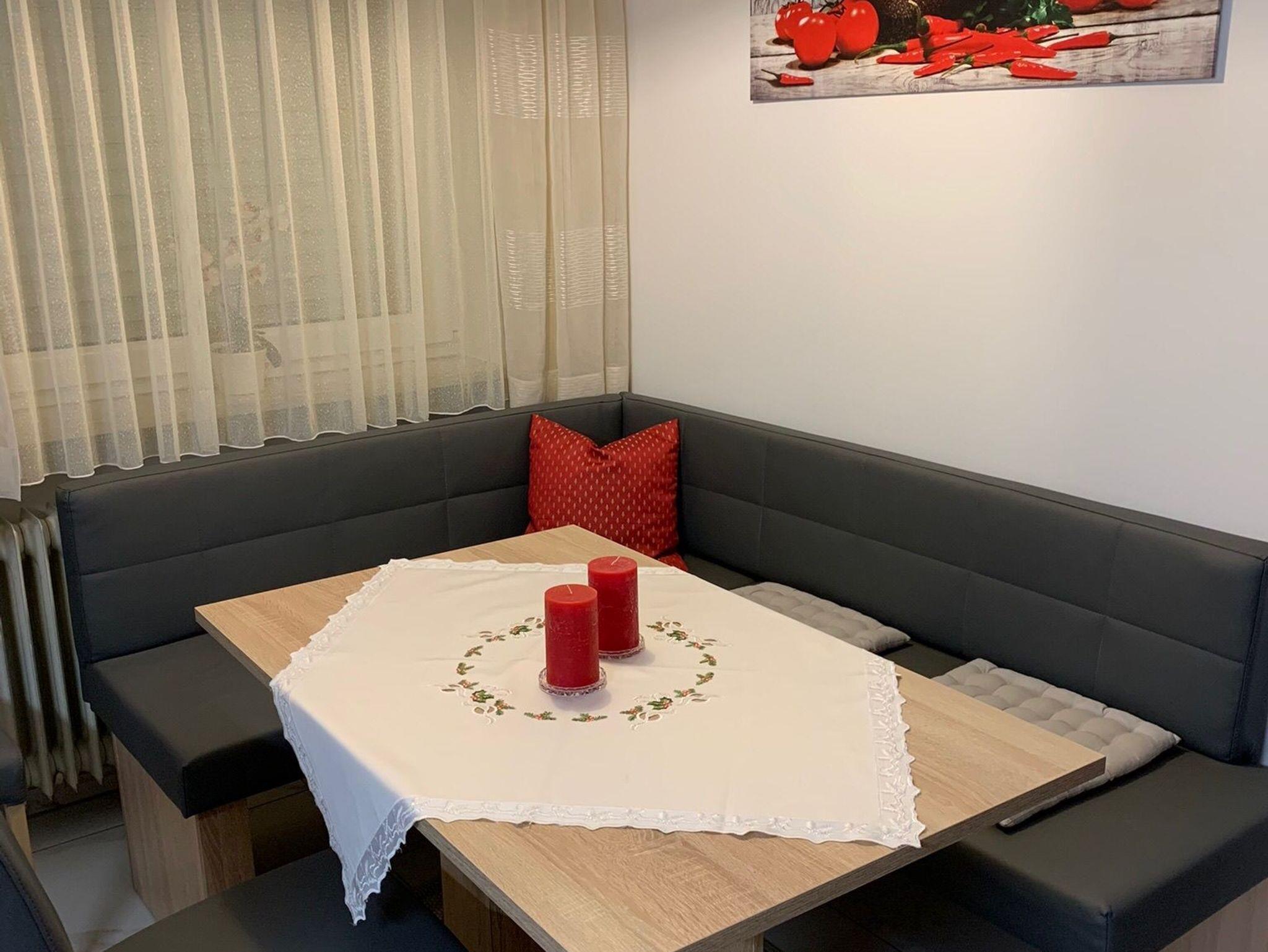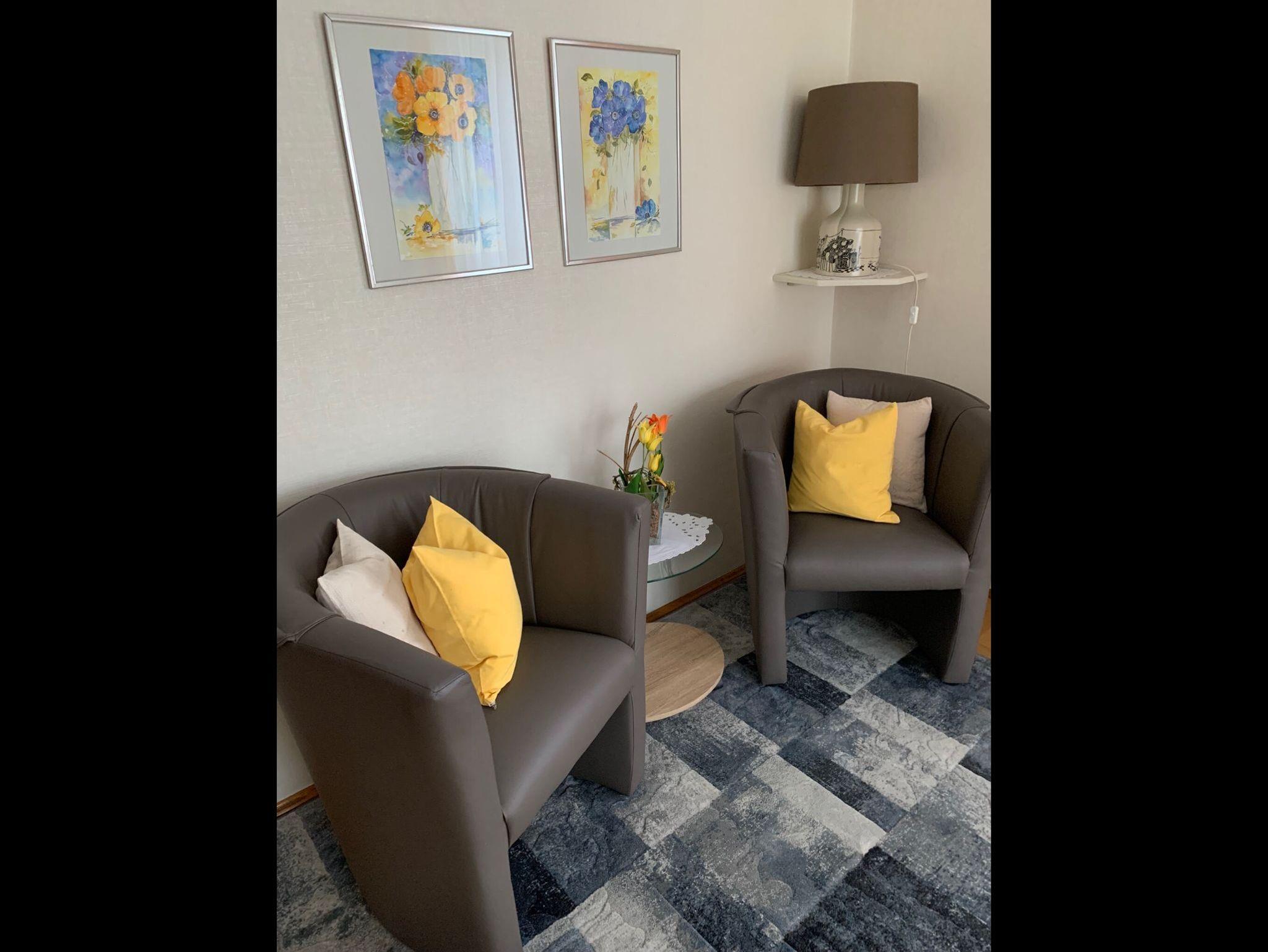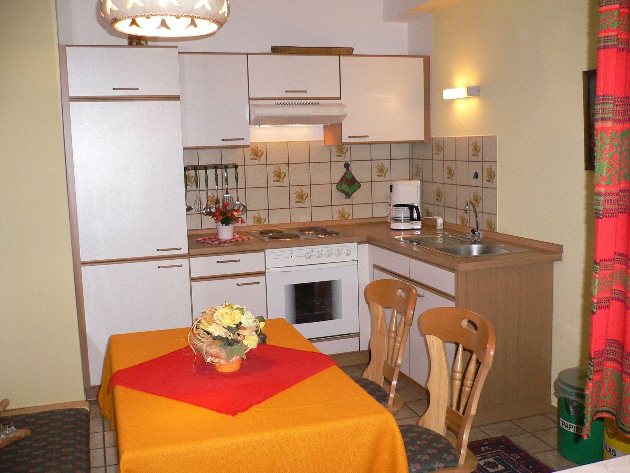 Die Wohnung ist ca. 60 qm groß. Sie verfügt über einen eigenen Eingang mit Windfang und ist ausgestattet mit einer komplett eingerichteten modernen Wohnküche einschließlich moderner elektrischer Küchengeräte, Mikrowelle und Geschirrspülmaschine sowie einer gemütlichen Sitzecke.