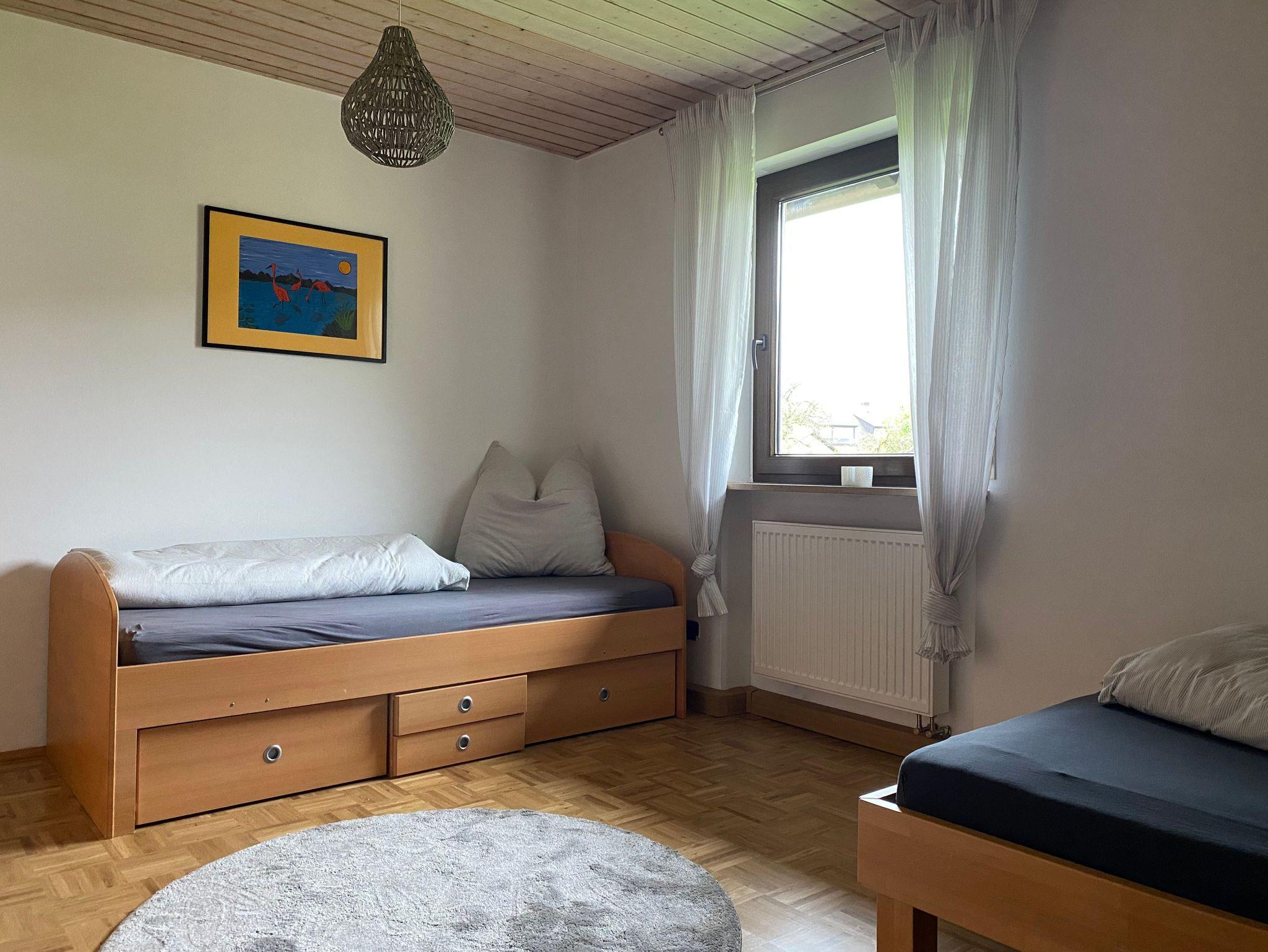 Im Schlafzimmer schläft man in einem modernen Boxspringbett, und im zweiten Schlafzimmer befinden sich zwei Einzelbetten. Außerdem gibt es ein Beistellbett, das man bei Bedarf in jedem Zimmer aufstellen kann. Bettwäsche ist für alle Betten vorhanden.